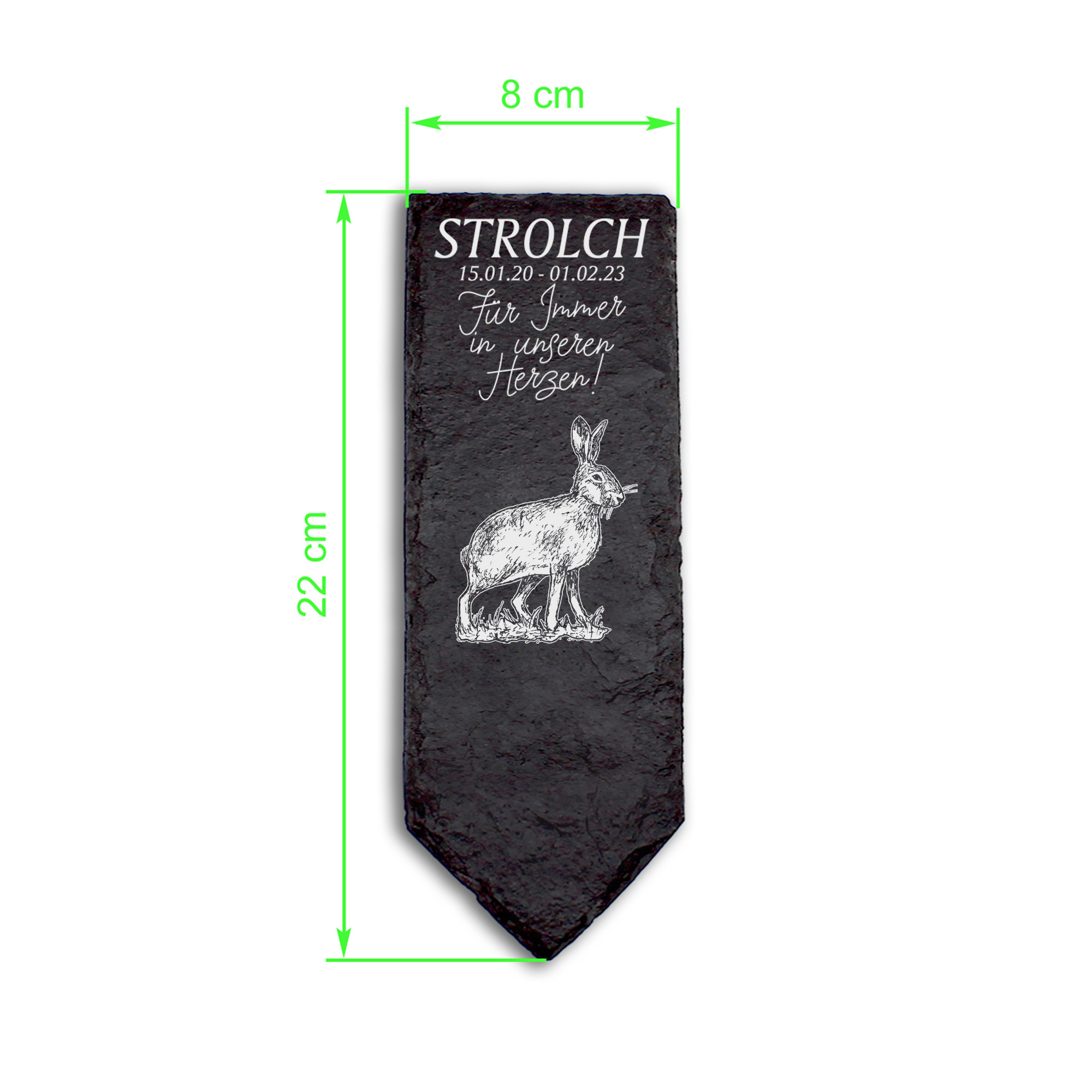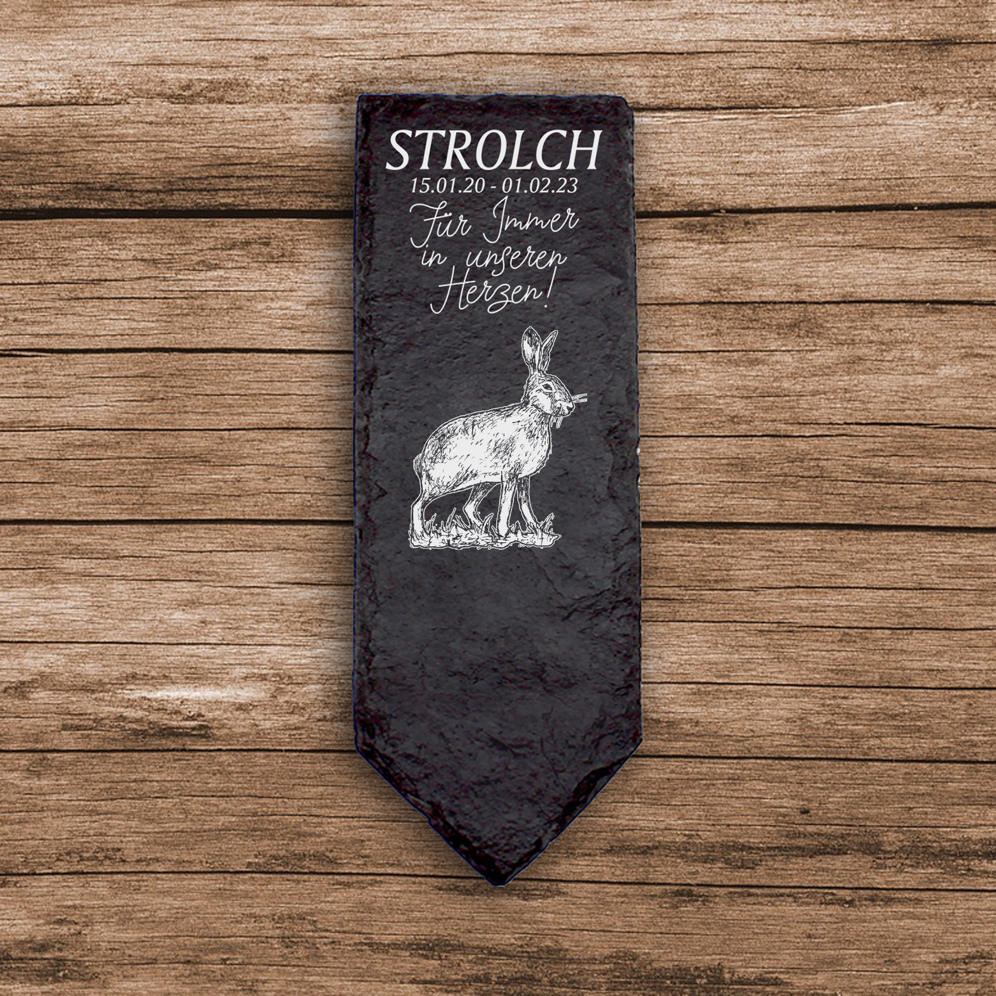 Verleihen Sie dem Grab Ihres geliebten Haustieres mit unserem personalisierten Grabstecker aus hochwertigem Schiefer eine ganz besondere Note. Mit individueller Gravur von Namen, Datum und einem wunderschönen Motiv wird dieser Grabstecker zu einer einzigartigen Gedenkstätte.