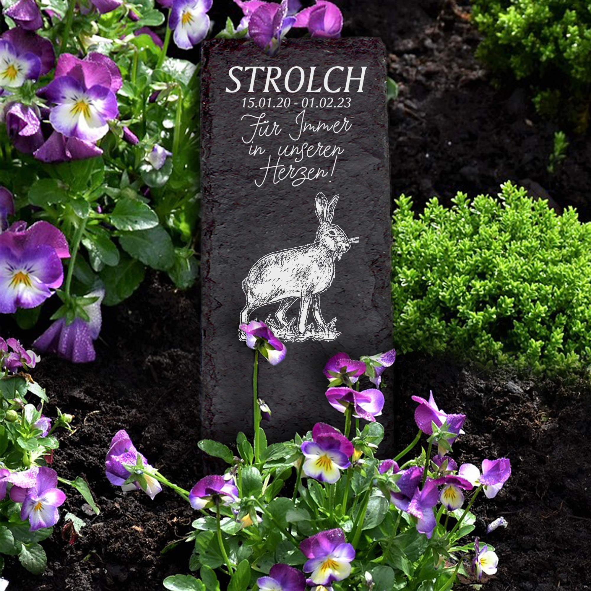 Grabstecker Grabschmuck Grabstein - Feldhase auf Wiese - Personalisiert Grab Deko 8 x 22 cm Grabdeko