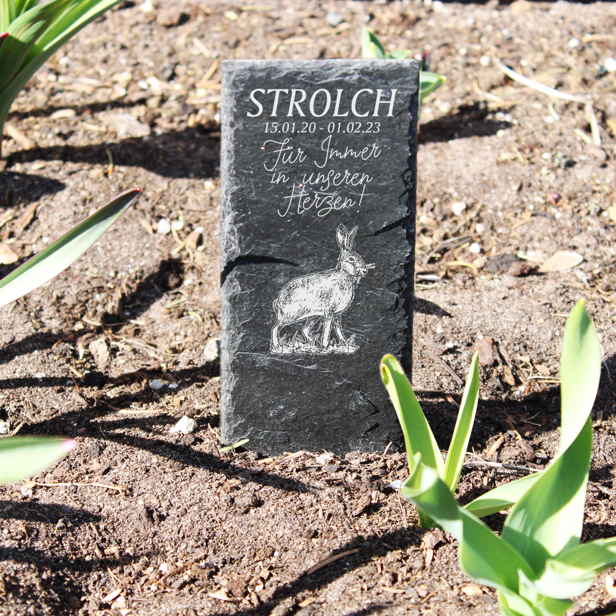 Mit diesem hochwertigen Grabschmuck aus Schieferplatten und der Möglichkeit einer individuellen Gravur bieten wir Ihnen die perfekte Möglichkeit, Ihrem geliebten Haustier eine würdevolle Ruhestätte zu schaffen. Bestellen Sie jetzt unseren personalisierten Grabstecker und bewahren Sie die Erinnerung an Ihr Haustier für immer. Ein unverzichtbarer Bestandteil jeder Grabstätte, der die Liebe und das Gedenken symbolisiert.