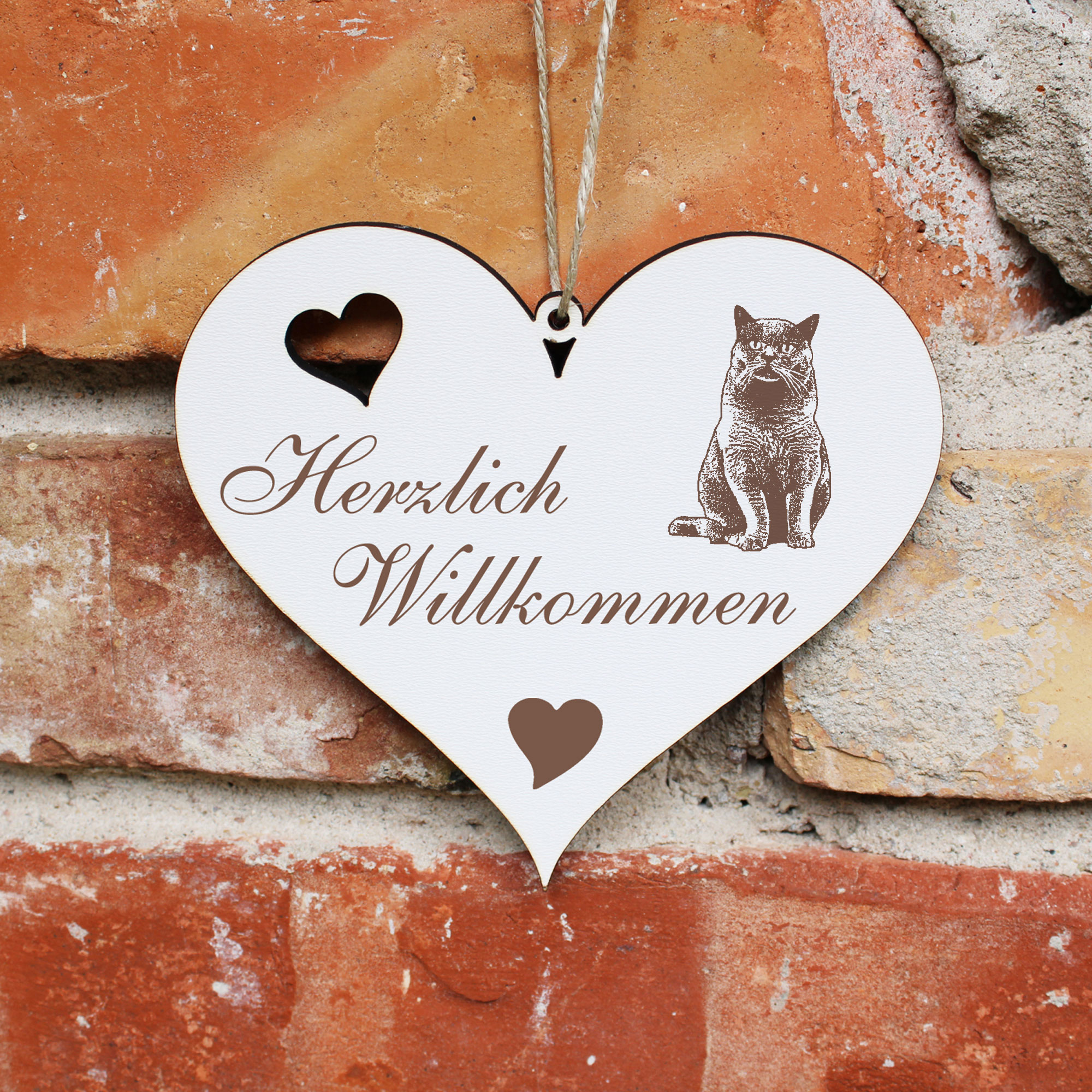 Herzlich Willkommen Schild - BKH Britisch Kurzhaar Katze - Deko Herz Holz