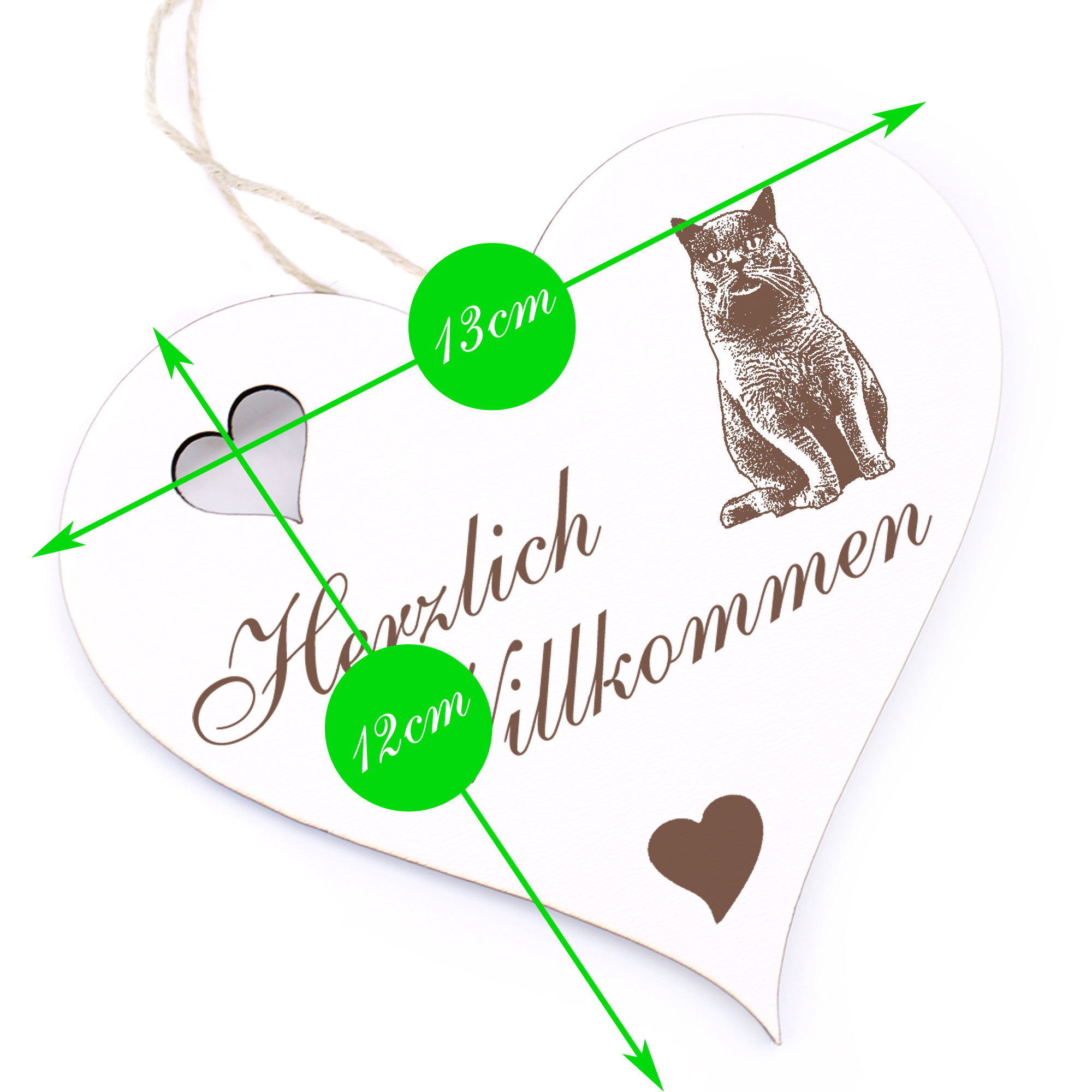 - DETAILS: Das Herzlich Willkommen Herz ist aus Holz (HDF) gefertigt, ist ca. 13cm x 12cm groß und wiegt etwa 41g. Das Juteband zum Aufhängen ist bereits an Ihrem Türschmuck angeknotet. Sie brauchen es nur noch an den Hauseingang bzw. an die Eingangstür hängen