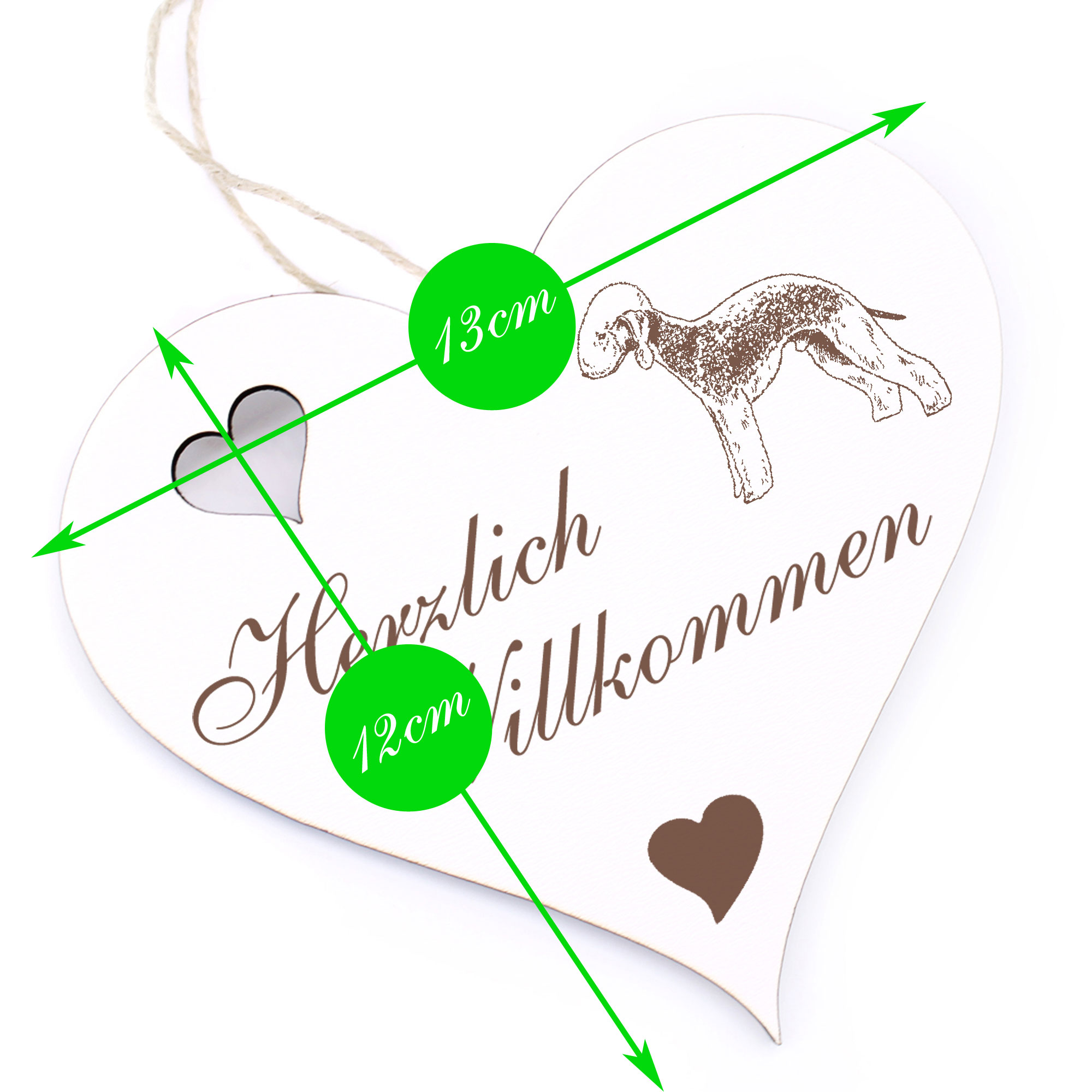 Produktinformationen "Herzlich Willkommen Schild - Bedlington Terrier - Deko Herz Holz"