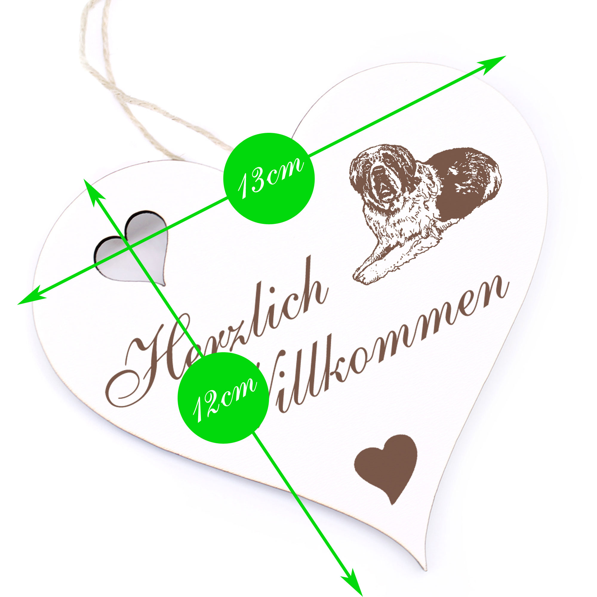 Produktinformationen "Herzlich Willkommen Schild - Bernhardiner - Deko Herz Holz"