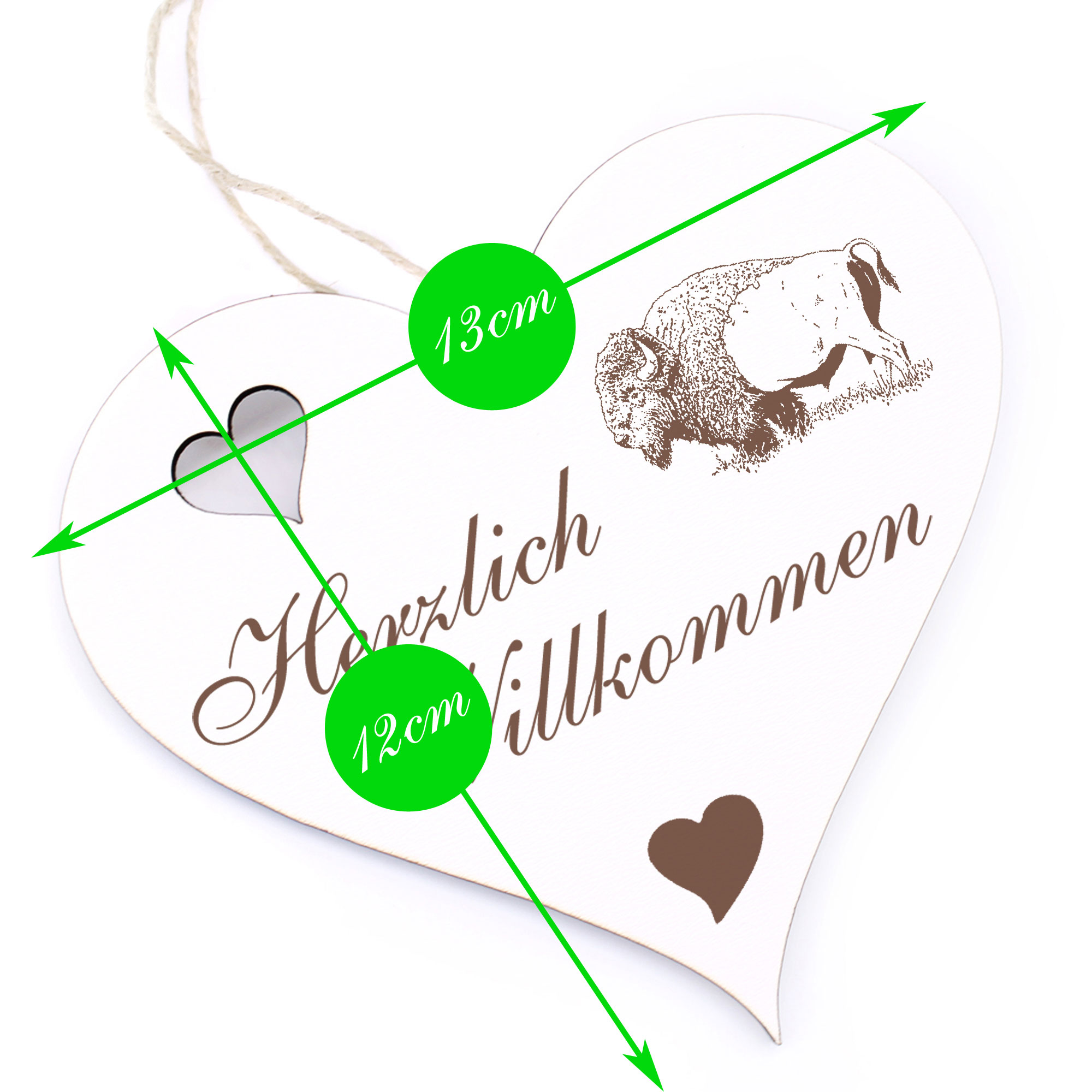 Herzlich Willkommen Schild - Bison - Deko Herz Holz