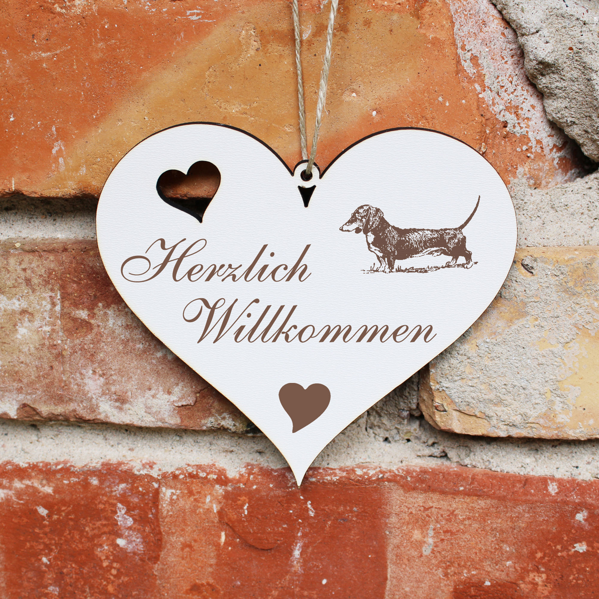 Herzlich Willkommen Schild - Dachshund - Deko Herz Holz
