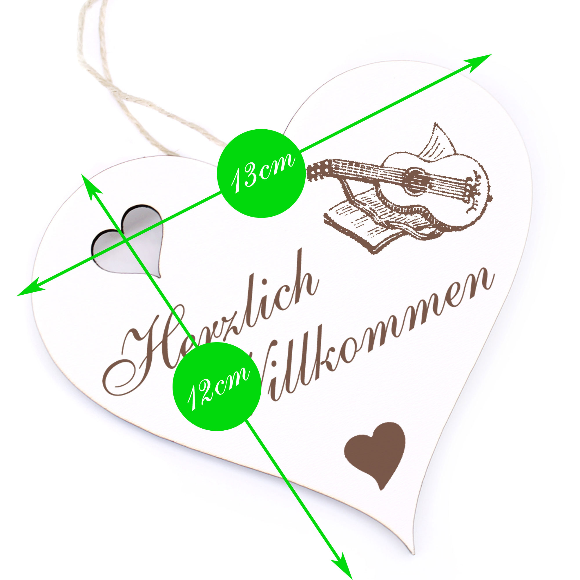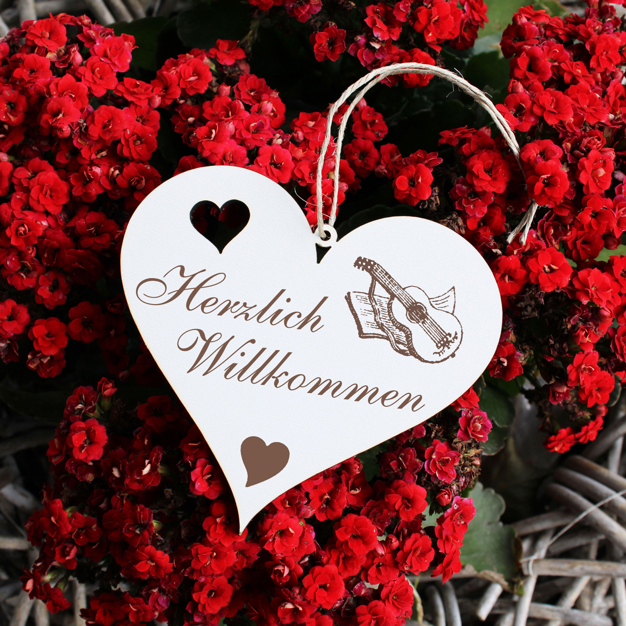 Herzlich Willkommen Schild - Gitarre mit Notenbuch - Deko Herz Holz