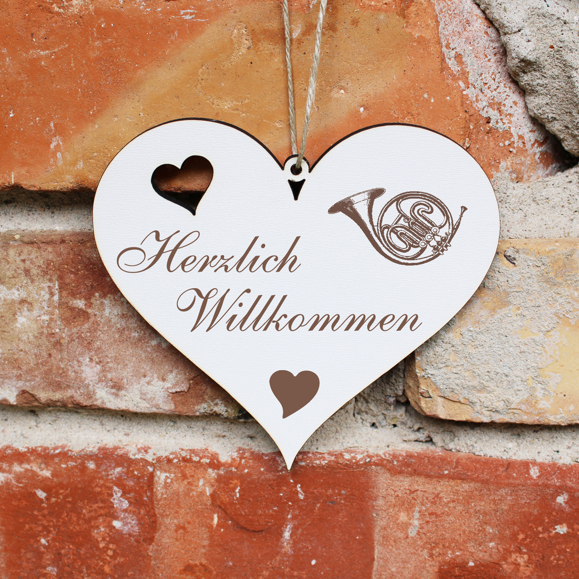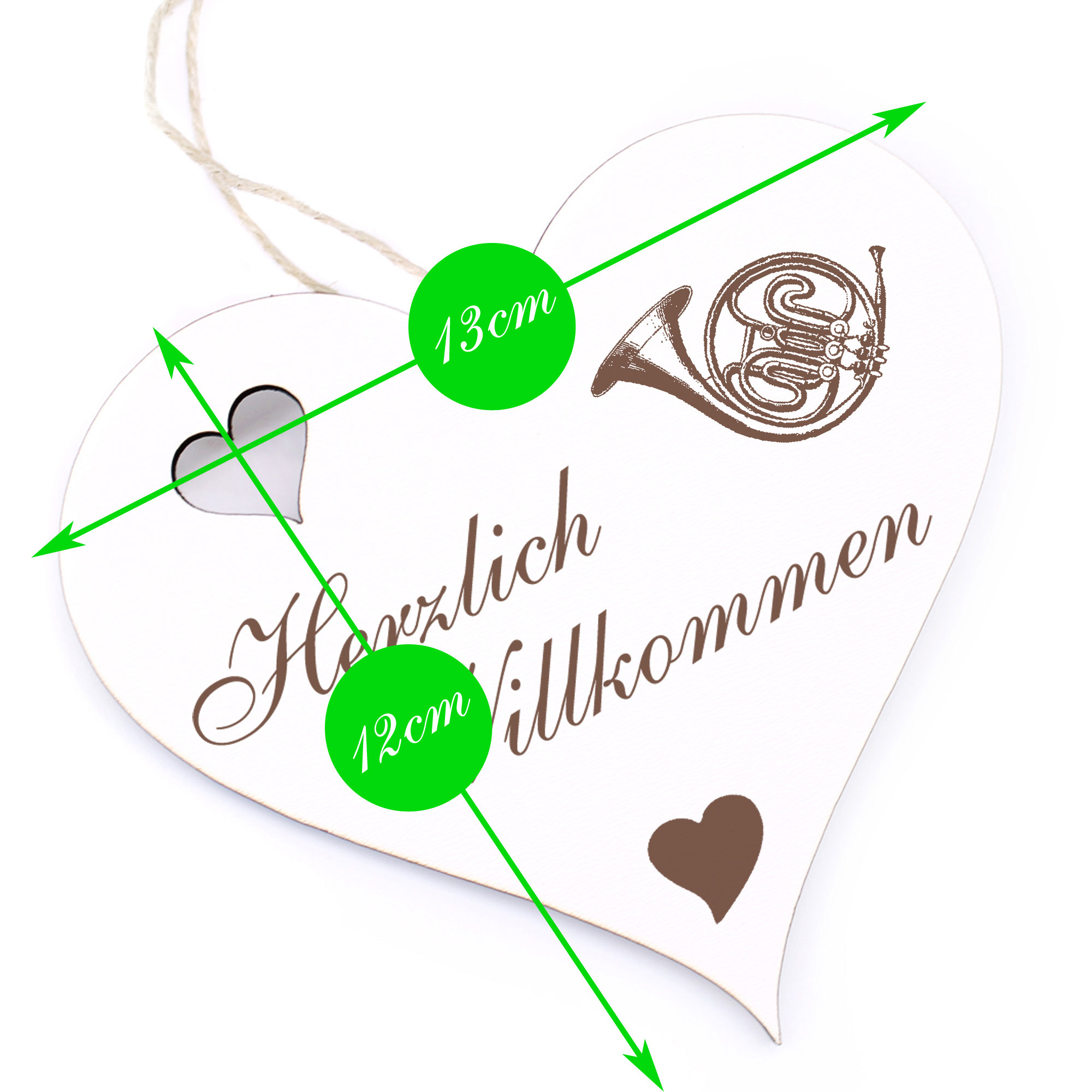 - DETAILS: Das Herzlich Willkommen Herz ist aus Holz (HDF) gefertigt, ist ca. 13cm x 12cm groß und wiegt etwa 41g. Das Juteband zum Aufhängen ist bereits an Ihrem Türschmuck angeknotet. Sie brauchen es nur noch an den Hauseingang bzw. an die Eingangstür hängen
