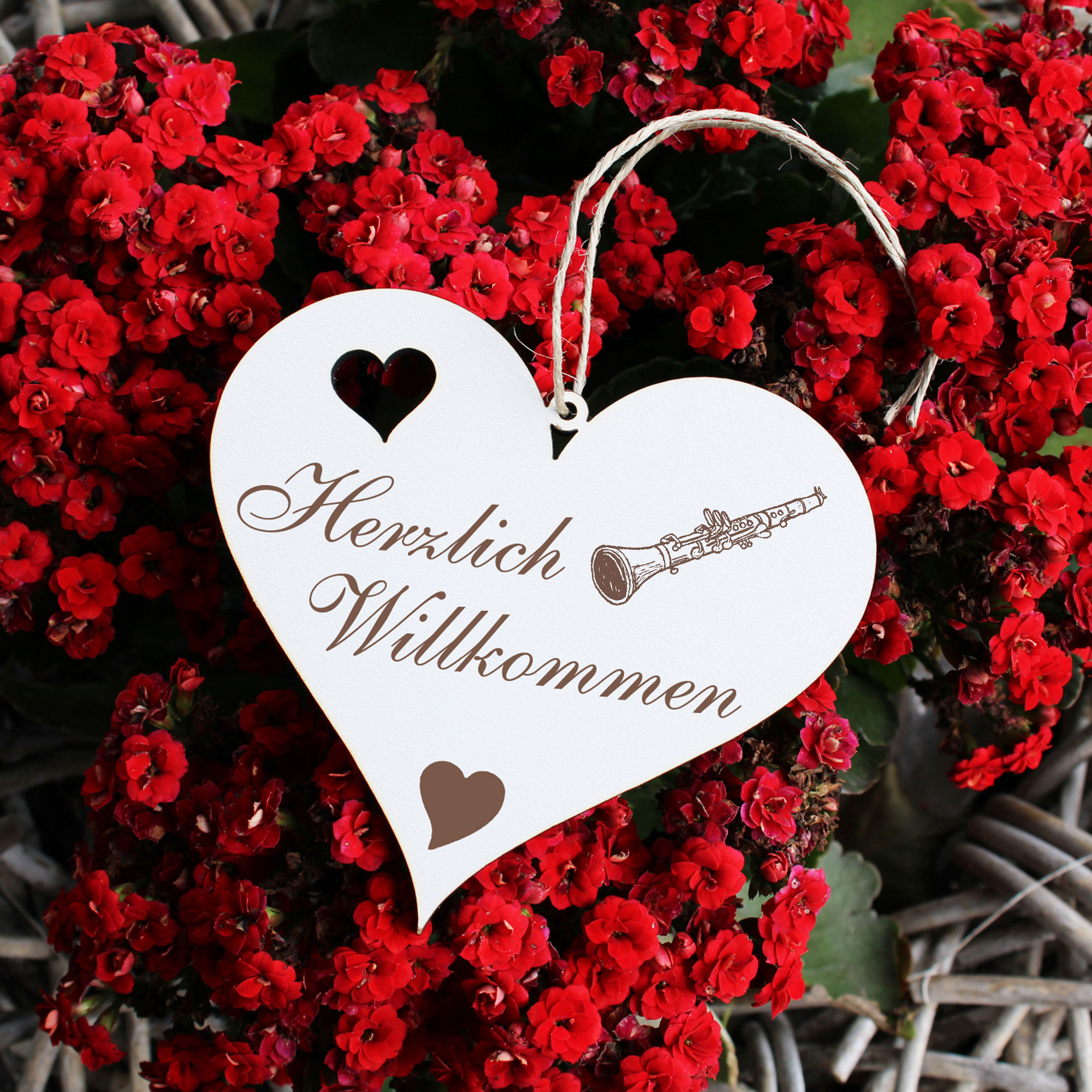 Herzlich Willkommen Schild - Klarinette - Deko Herz Holz