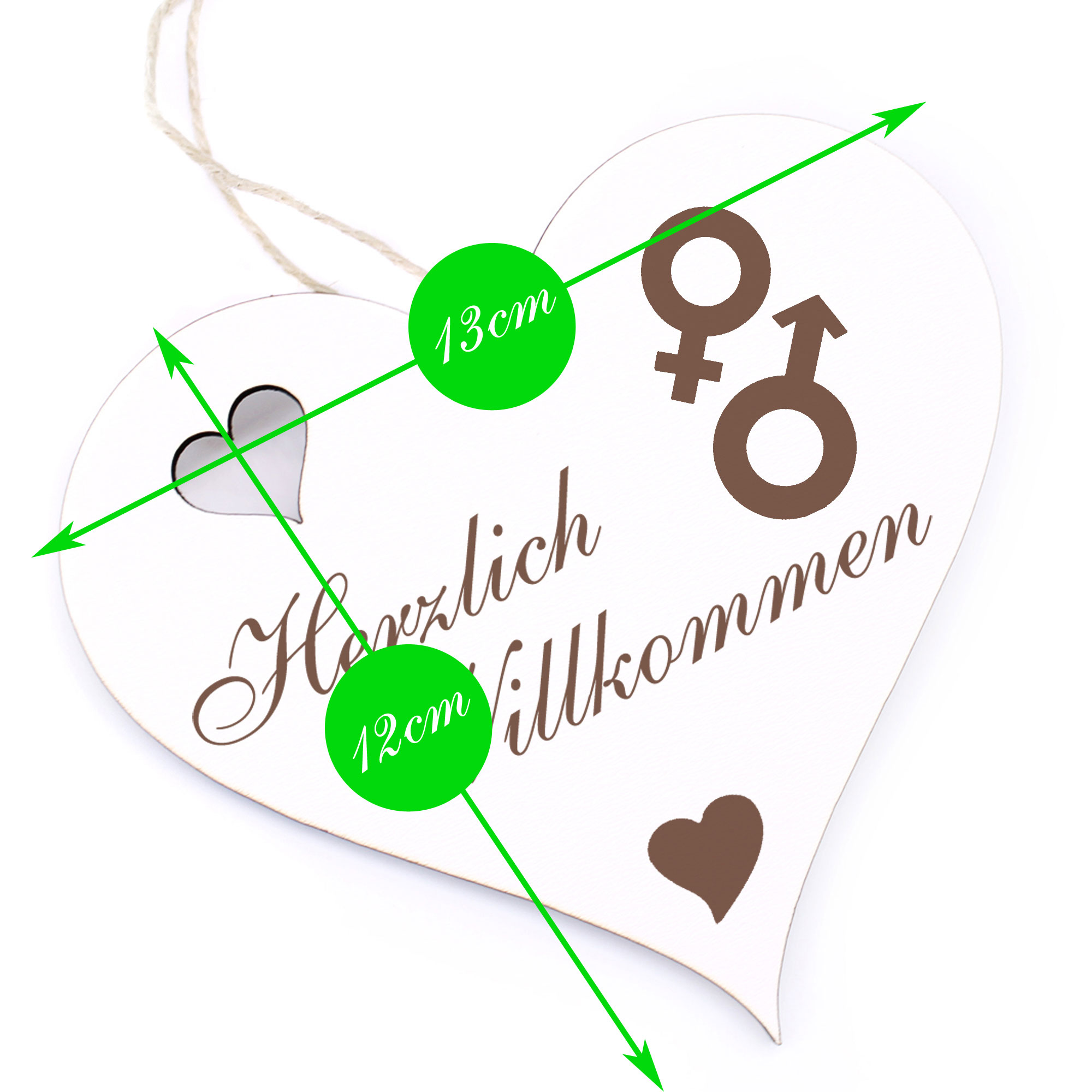 - DETAILS: Das Herzlich Willkommen Herz ist aus Holz (HDF) gefertigt, ist ca. 13cm x 12cm groß und wiegt etwa 41g. Das Juteband zum Aufhängen ist bereits an Ihrem Türschmuck angeknotet. Sie brauchen es nur noch an den Hauseingang bzw. an die Eingangstür hängen