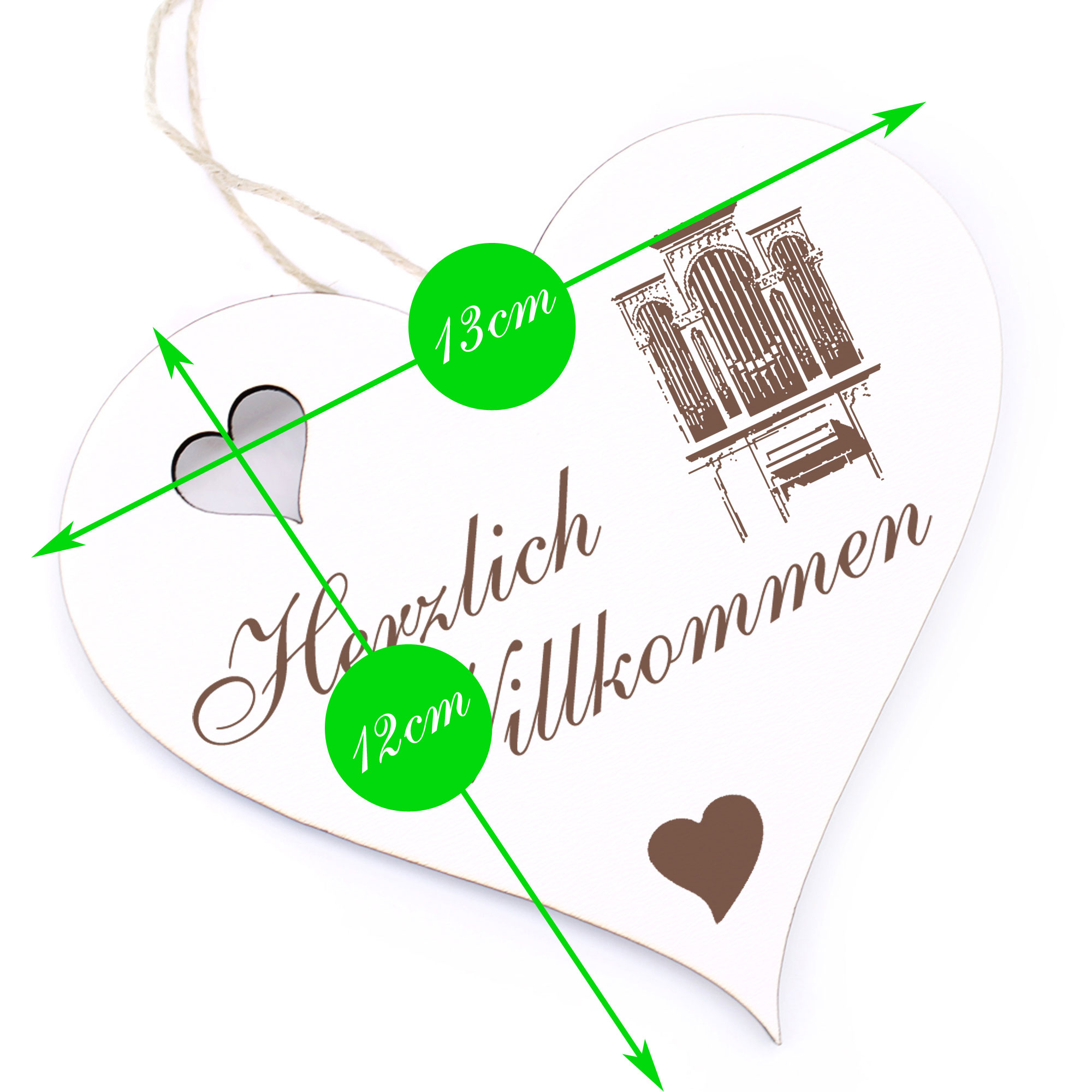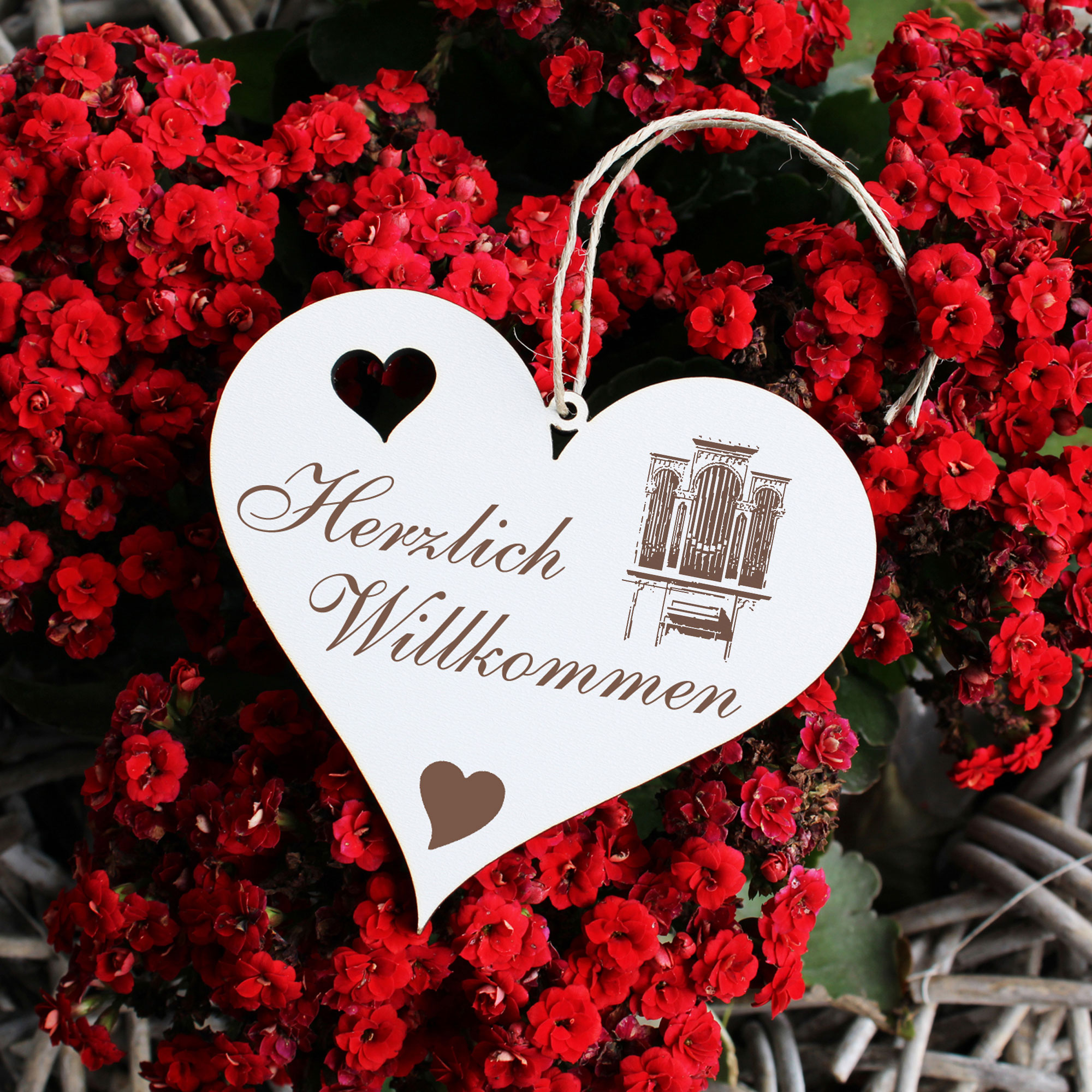 Herzlich Willkommen Schild - Orgel - Deko Herz Holz