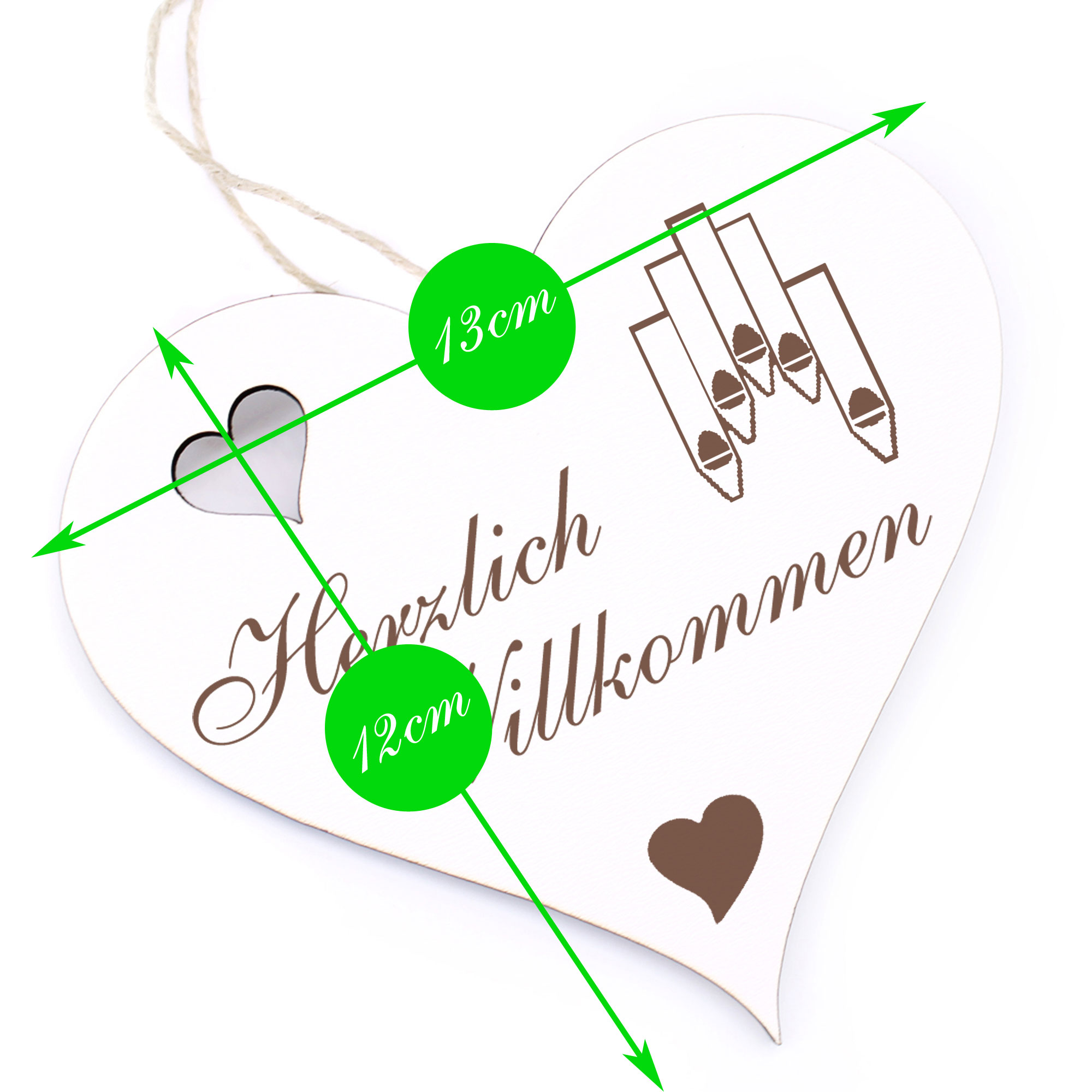 - DETAILS: Das Herzlich Willkommen Herz ist aus Holz (HDF) gefertigt, ist ca. 13cm x 12cm groß und wiegt etwa 41g. Das Juteband zum Aufhängen ist bereits an Ihrem Türschmuck angeknotet. Sie brauchen es nur noch an den Hauseingang bzw. an die Eingangstür hängen