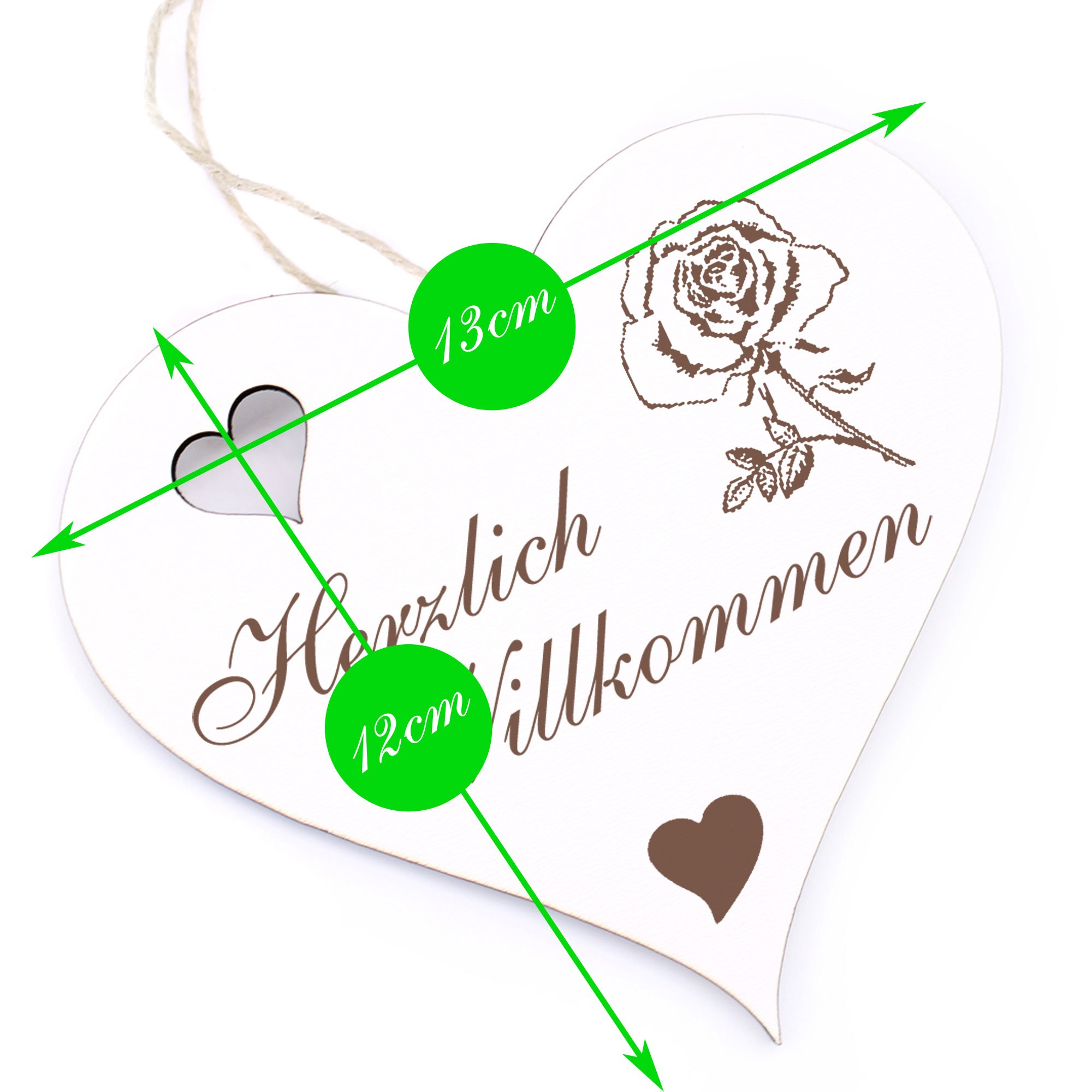- DETAILS: Das Herzlich Willkommen Herz ist aus Holz (HDF) gefertigt, ist ca. 13cm x 12cm groß und wiegt etwa 41g. Das Juteband zum Aufhängen ist bereits an Ihrem Türschmuck angeknotet. Sie brauchen es nur noch an den Hauseingang bzw. an die Eingangstür hängen