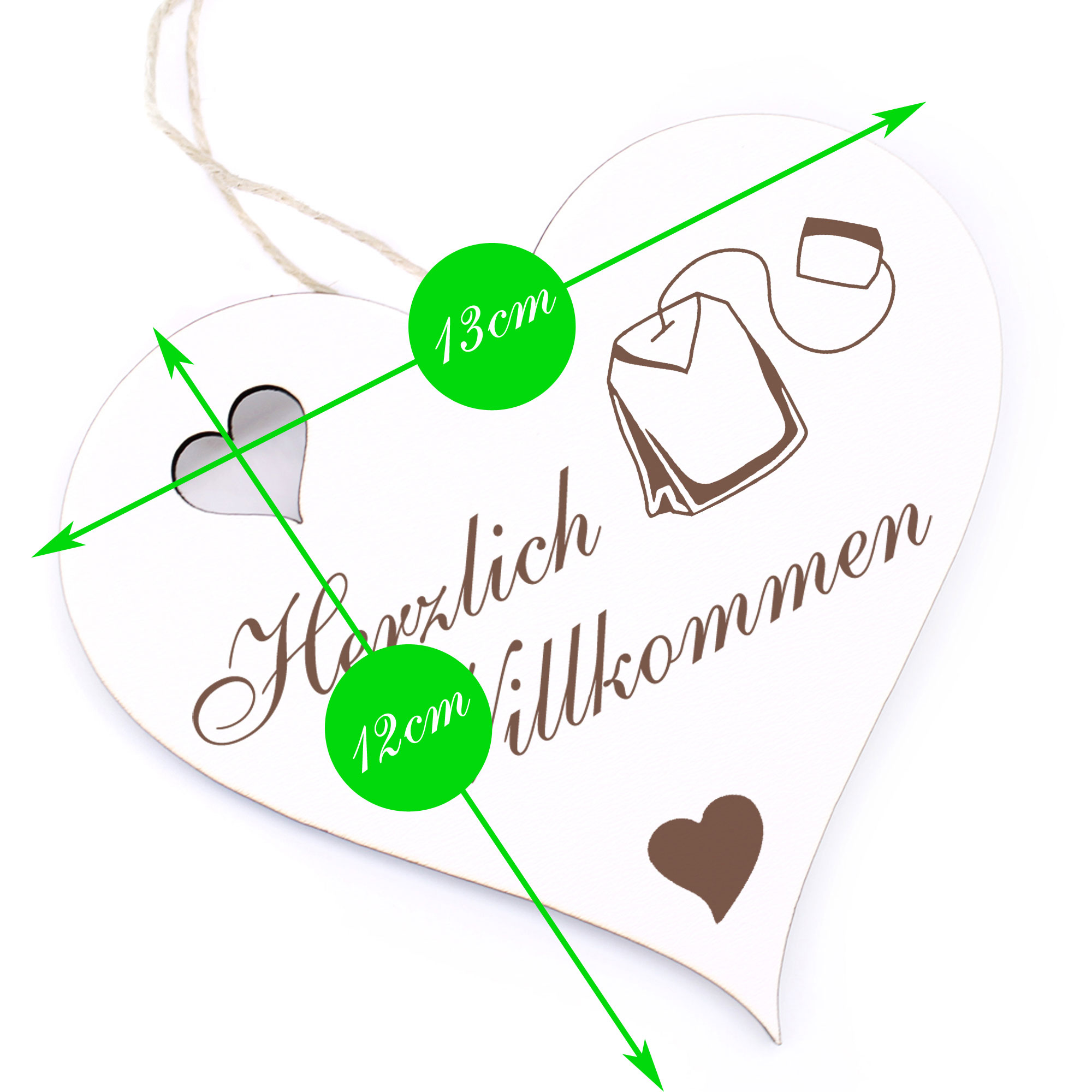 Herzlich Willkommen Schild - Teebeutel - Deko Herz Holz