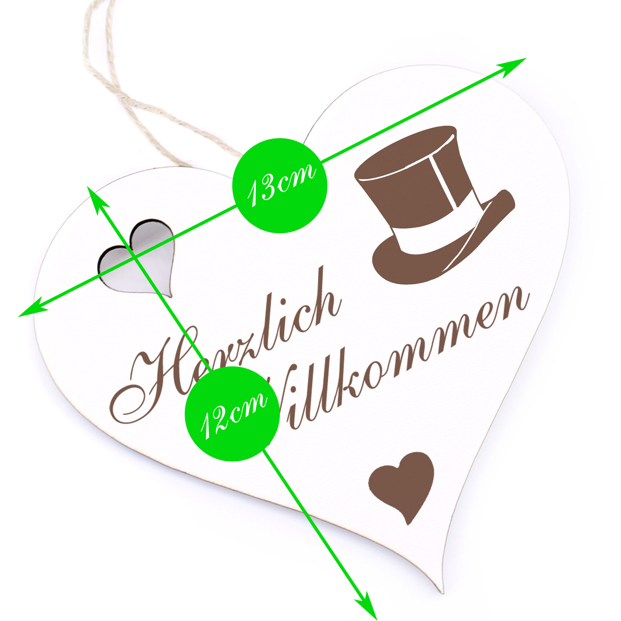 - DETAILS: Das Herzlich Willkommen Herz ist aus Holz (HDF) gefertigt, ist ca. 13cm x 12cm groß und wiegt etwa 41g. Das Juteband zum Aufhängen ist bereits an Ihrem Türschmuck angeknotet. Sie brauchen es nur noch an den Hauseingang bzw. an die Eingangstür hängen