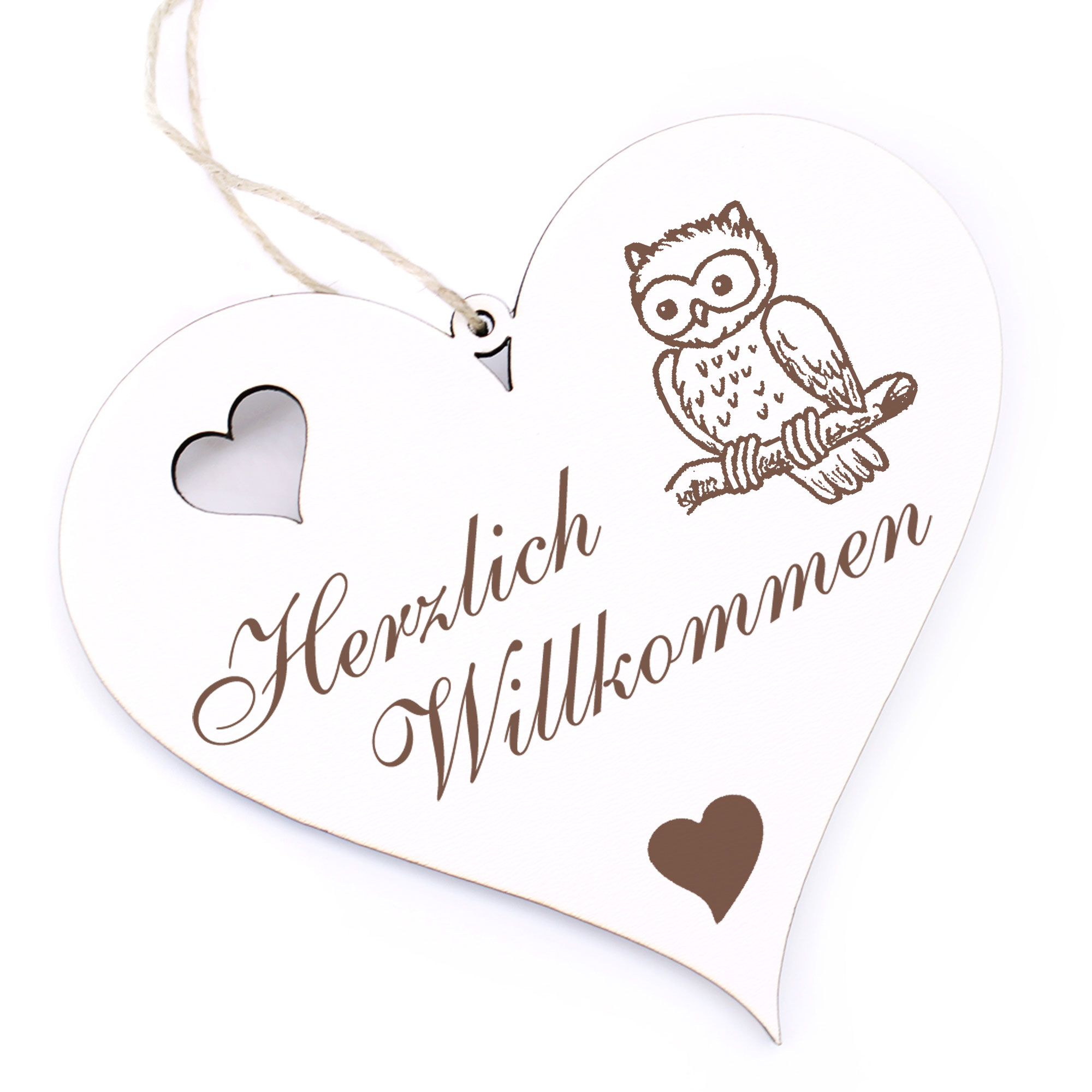 Herzlich Willkommen Schild - niedliche Eule - Deko Herz Holz