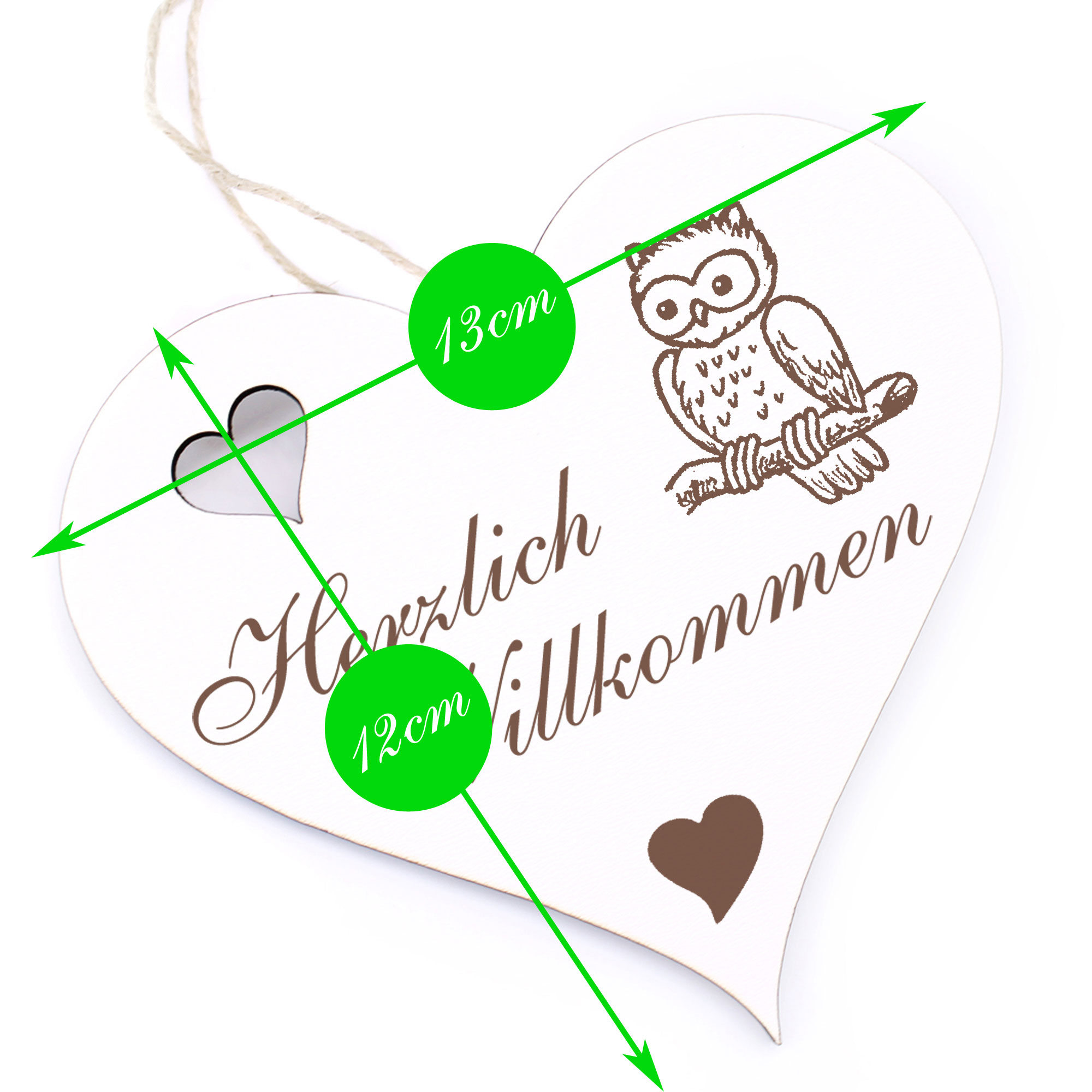 - DETAILS: Das Herzlich Willkommen Herz ist aus Holz (HDF) gefertigt, ist ca. 13cm x 12cm groß und wiegt etwa 41g. Das Juteband zum Aufhängen ist bereits an Ihrem Türschmuck angeknotet. Sie brauchen es nur noch an den Hauseingang bzw. an die Eingangstür hängen