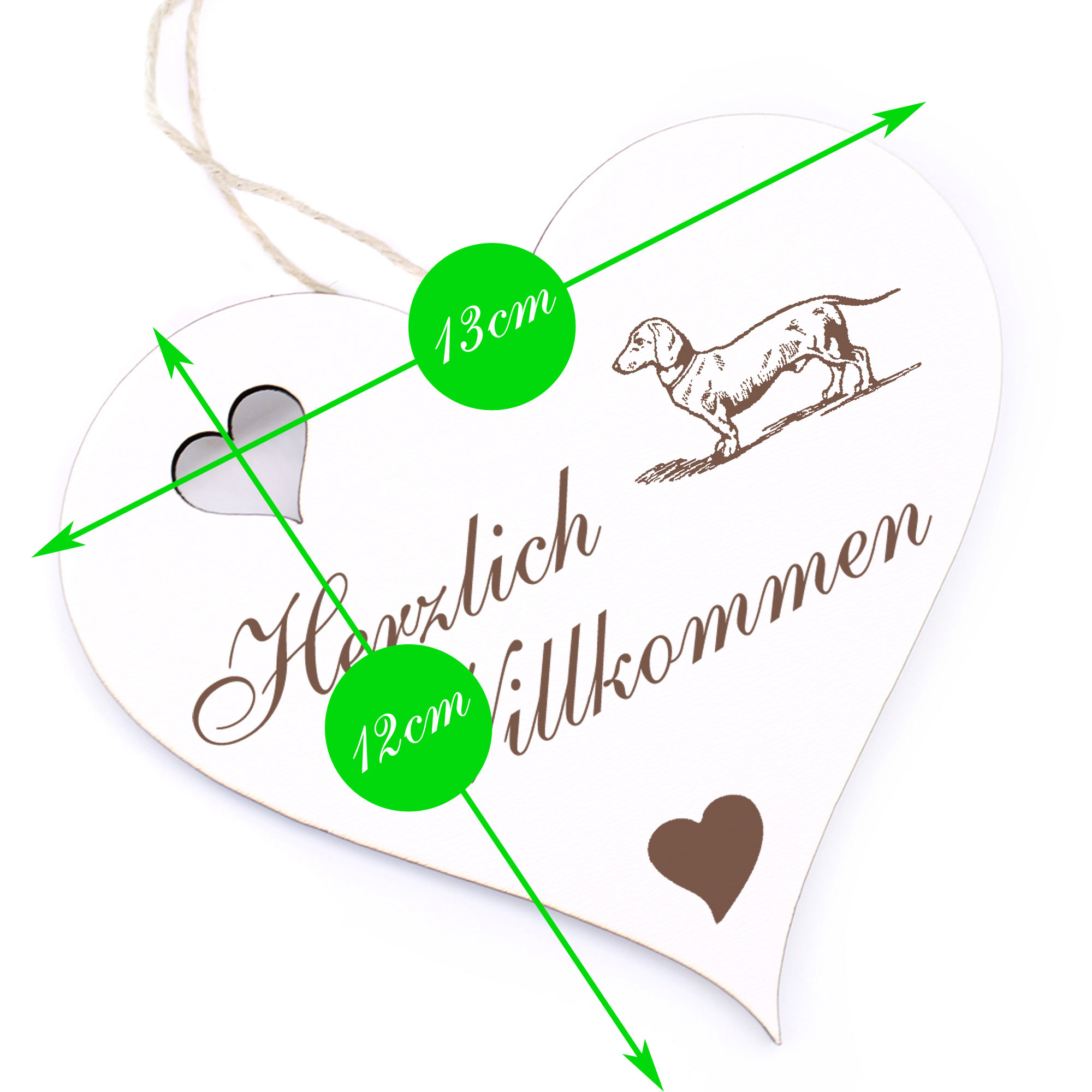 - DETAILS: Das Herzlich Willkommen Herz ist aus Holz (HDF) gefertigt, ist ca. 13cm x 12cm groß und wiegt etwa 41g. Das Juteband zum Aufhängen ist bereits an Ihrem Türschmuck angeknotet. Sie brauchen es nur noch an den Hauseingang bzw. an die Eingangstür hängen