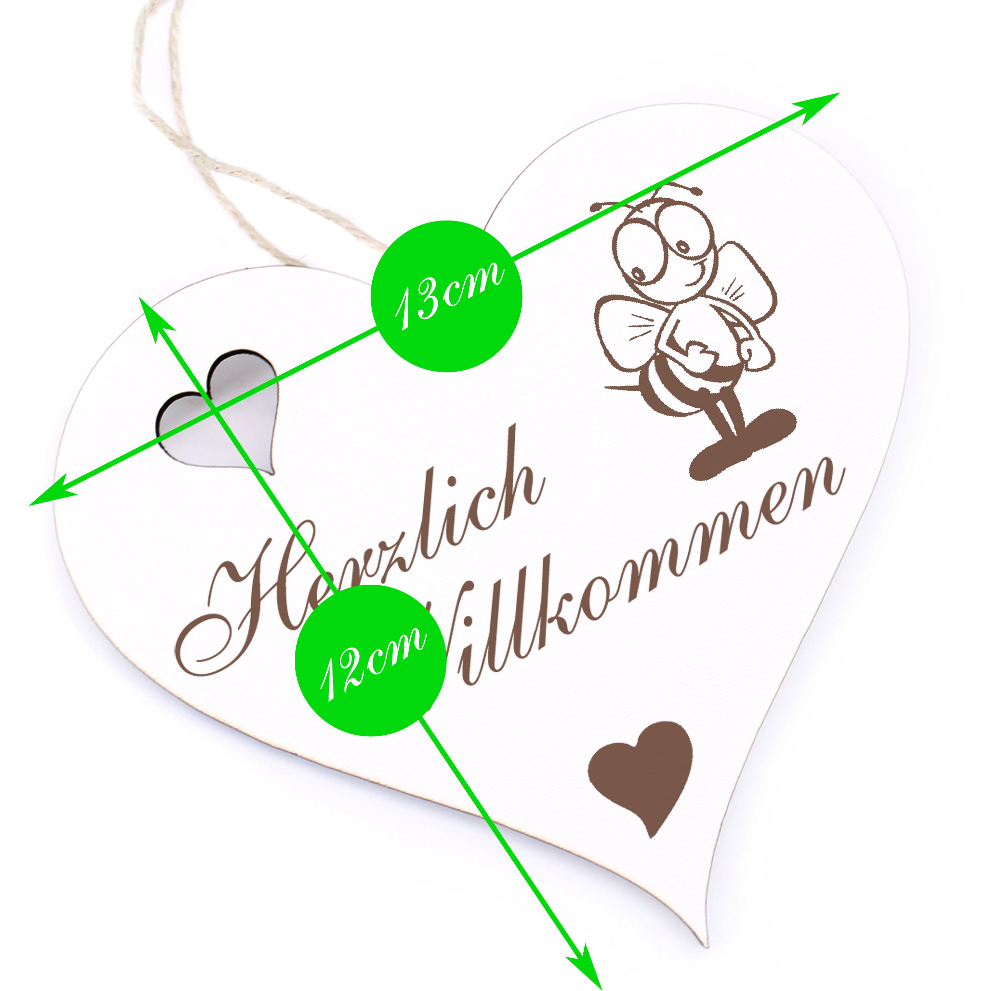 - DETAILS: Das Herzlich Willkommen Herz ist aus Holz (HDF) gefertigt, ist ca. 13cm x 12cm groß und wiegt etwa 41g. Das Juteband zum Aufhängen ist bereits an Ihrem Türschmuck angeknotet. Sie brauchen es nur noch an den Hauseingang bzw. an die Eingangstür hängen