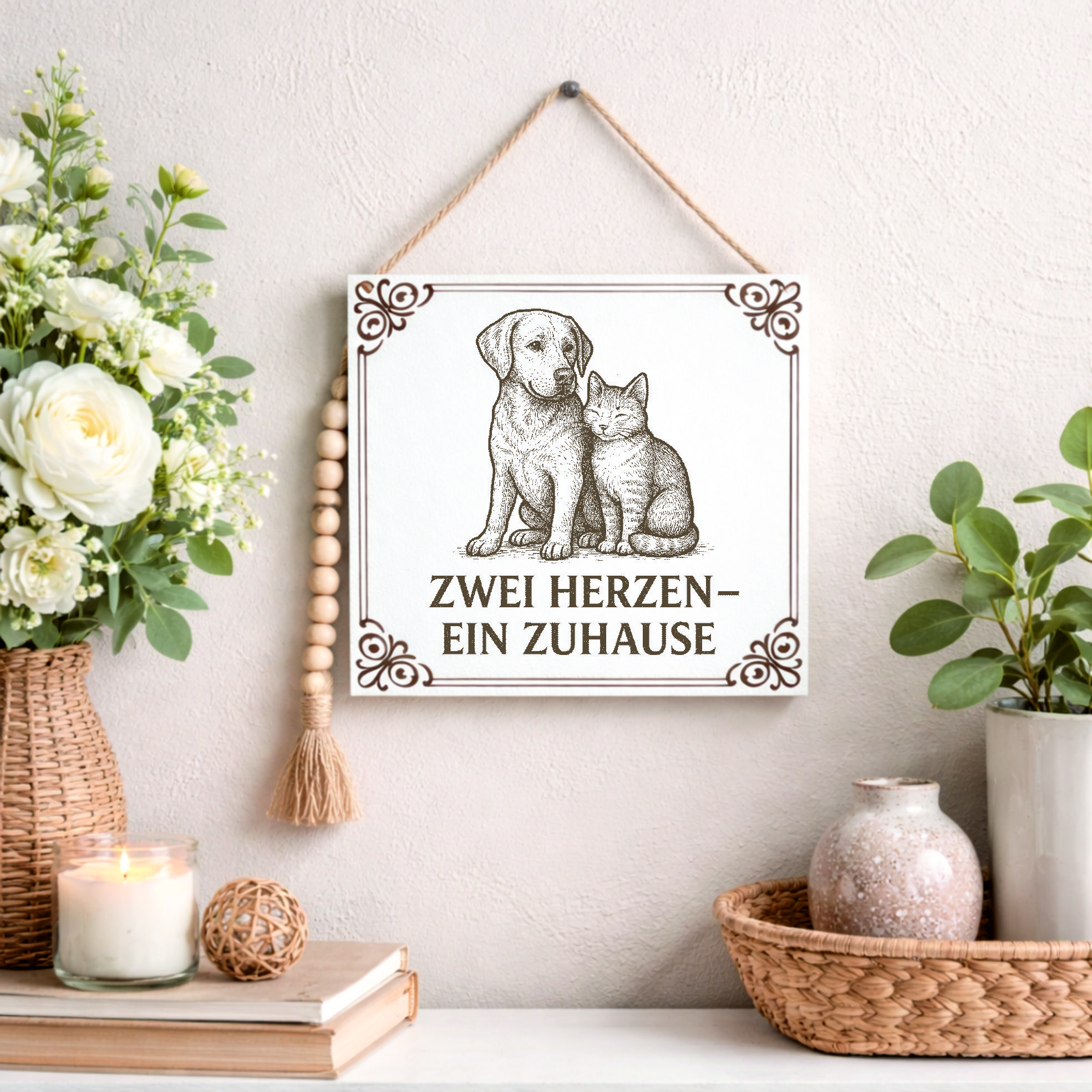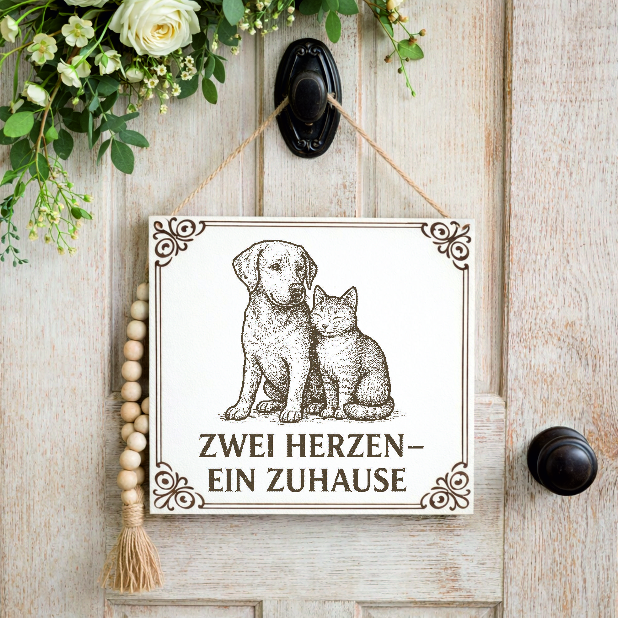Ob für das eigene Zuhause oder als Geschenk – dieses Dekoschild ist eine schöne Möglichkeit, die Liebe zu Hunden und Katzen sichtbar zu machen.