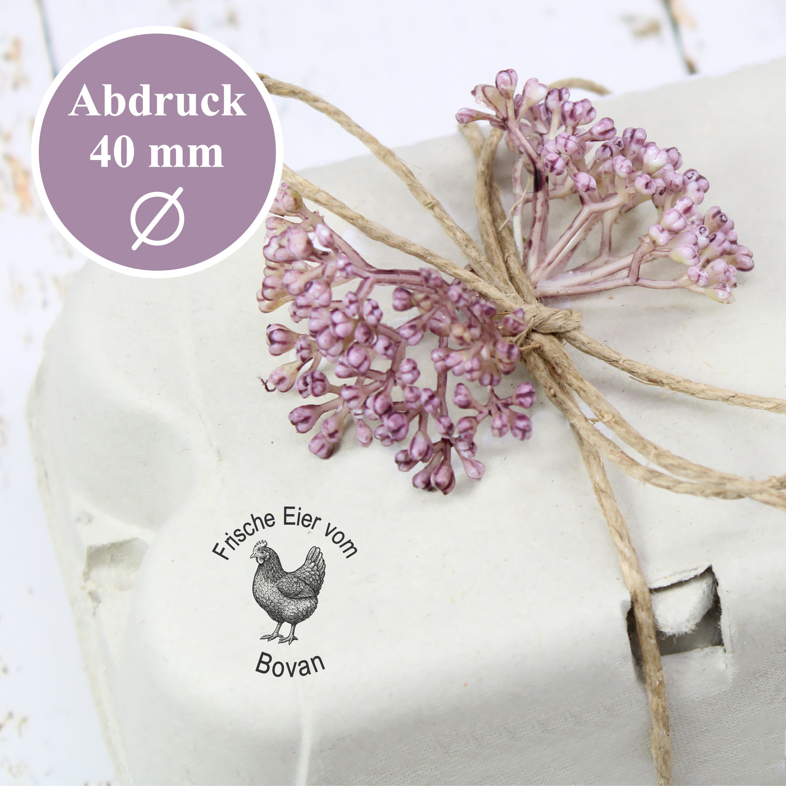 Vielseitig einsetzbar: Sie können den Stempel vielseitig einsetzen: für Eierverkauf, Hofladen, Bioladen, Bauernmarkt, Produktetiketten, Verpackungen, Scrapbooking, Farmhouse-Dekoration und kreative DIY-Ideen. Der individuelle Stempel unterstreicht die Herkunft Ihrer Produkte auf stilvolle Weise.