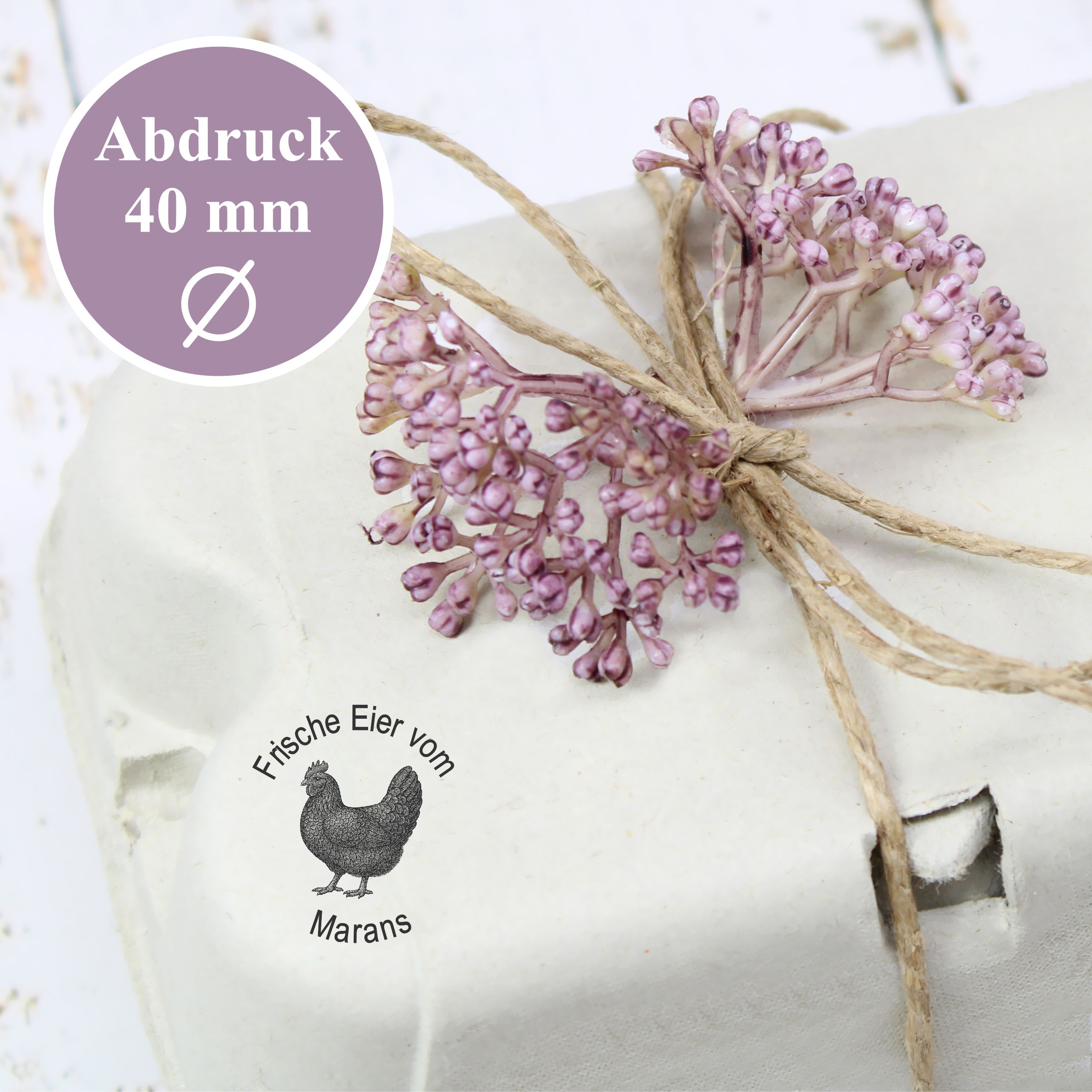 Vielseitig einsetzbar: Sie können den Stempel vielseitig einsetzen: für Eierverkauf, Hofladen, Bioladen, Bauernmarkt, Produktetiketten, Verpackungen, Scrapbooking, Farmhouse-Dekoration und kreative DIY-Ideen. Der individuelle Stempel unterstreicht die Herkunft Ihrer Produkte auf stilvolle Weise.