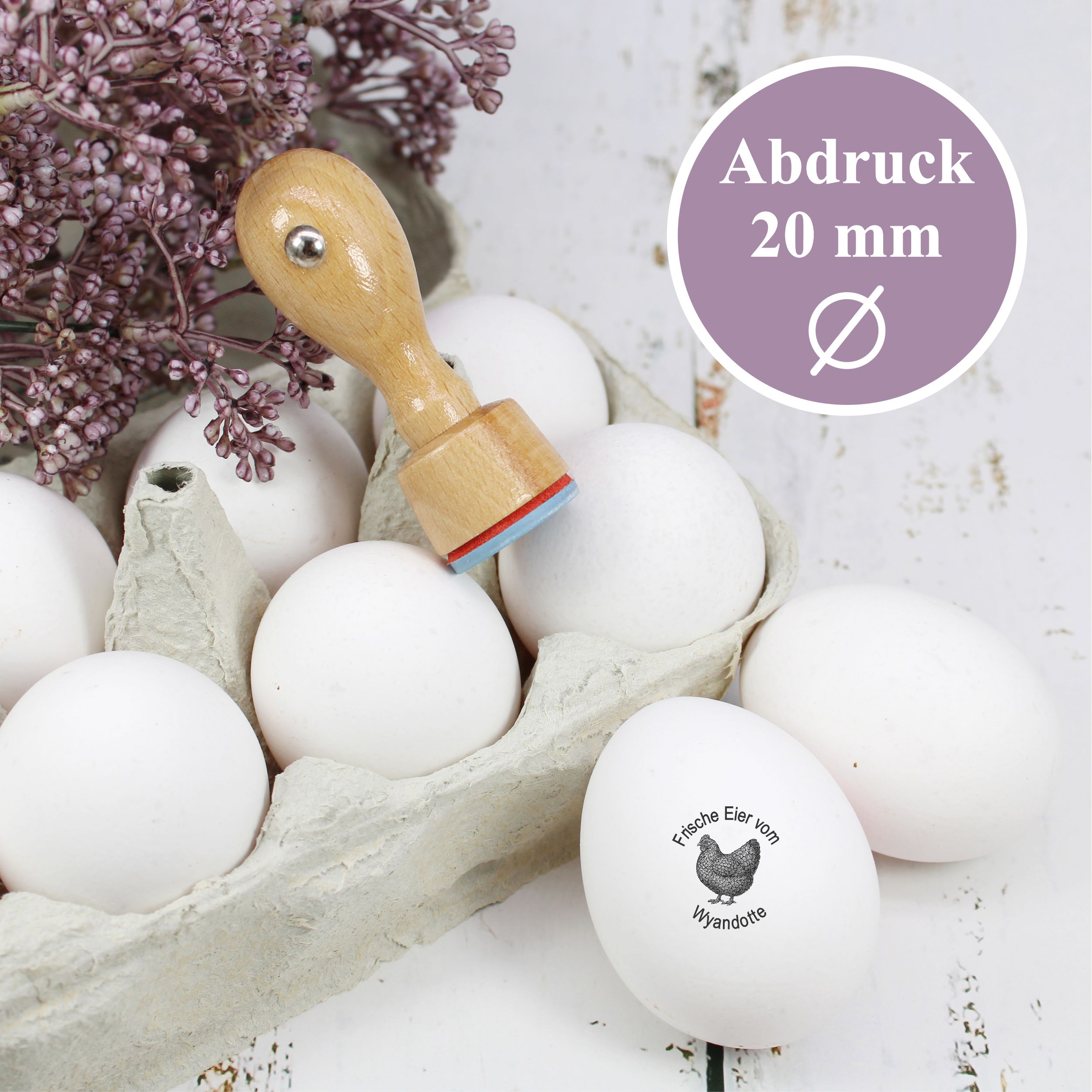 Holzstempel personalisiert „Frische Eier vom Wyandotte“ – Hühner Motivstempel Huhn