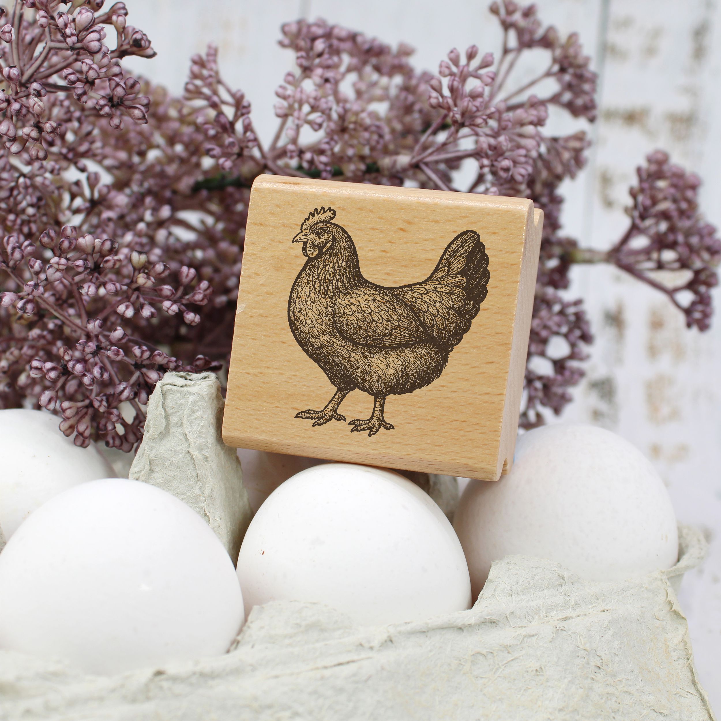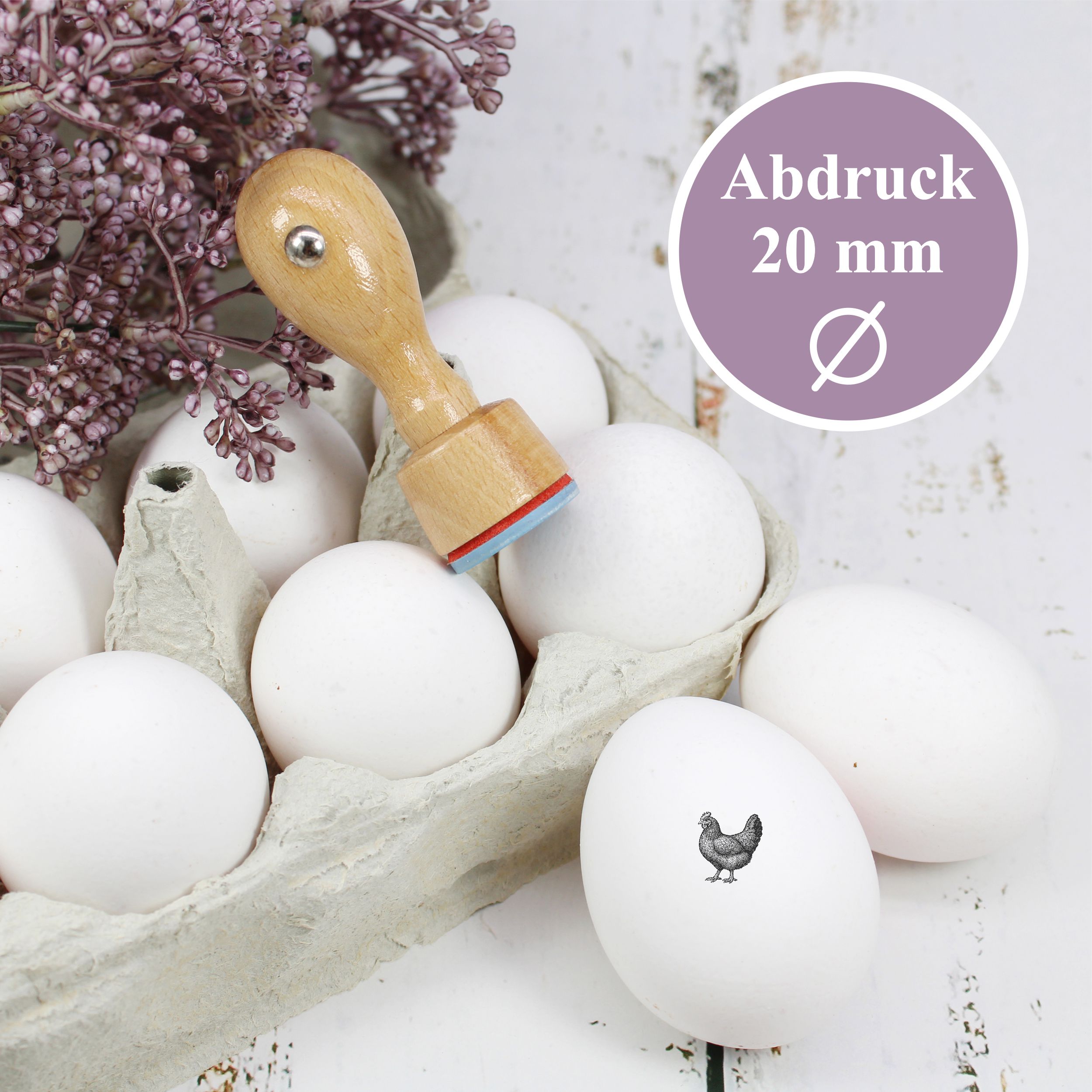 Unser Holzstempel mit Hühnermotiv verbindet detailreiche Motive mit langlebiger Qualität. Wählen Sie aus verschiedenen Hühnermotiven – darunter traditionelle Landhuhn-Arten wie Sperber oder Augsburger – in 3 praktischen Größen (Ø 20 mm, 30 mm, 60 mm), perfekt abgestimmt für kleine, mittlere und große Kreativarbeiten.