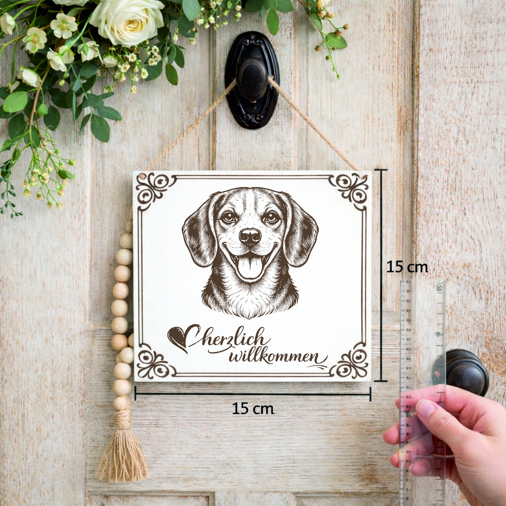 Hund Willkommensschild Beagle – Türschild Herzlich Willkommen – Dekoschild Haustür 15×15 cm