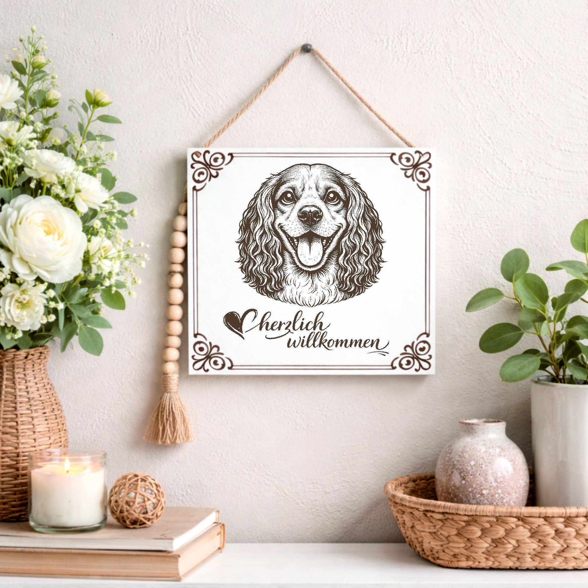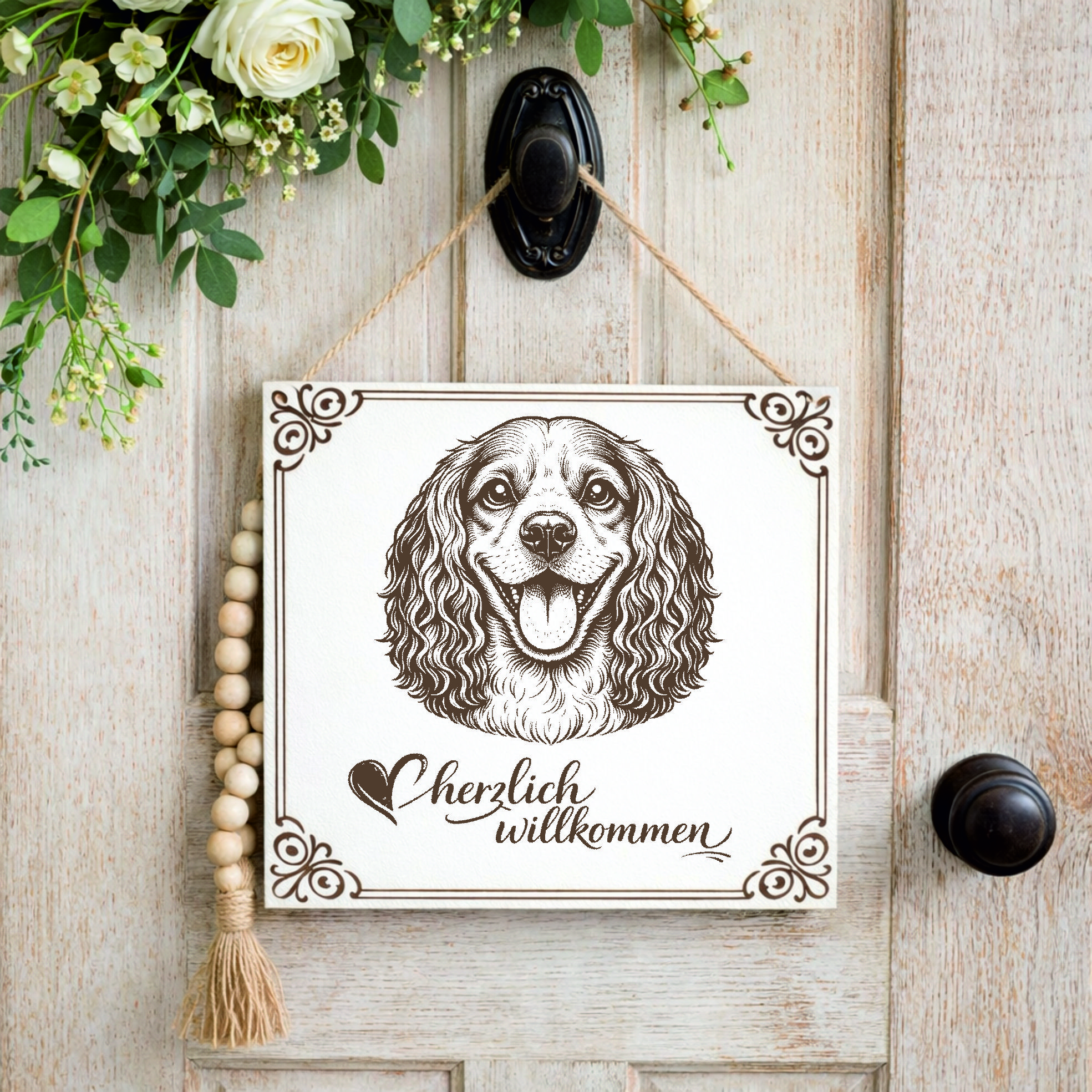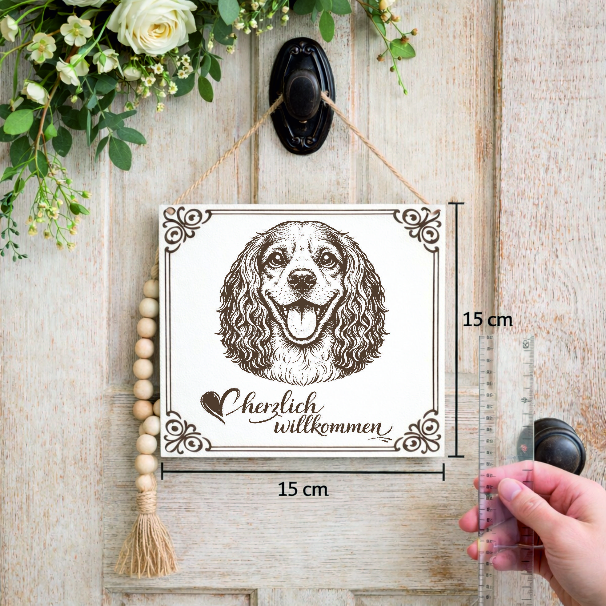 Hund Willkommensschild Cocker Spaniel – Türschild Herzlich Willkommen – Dekoschild Haustür 15×15 cm