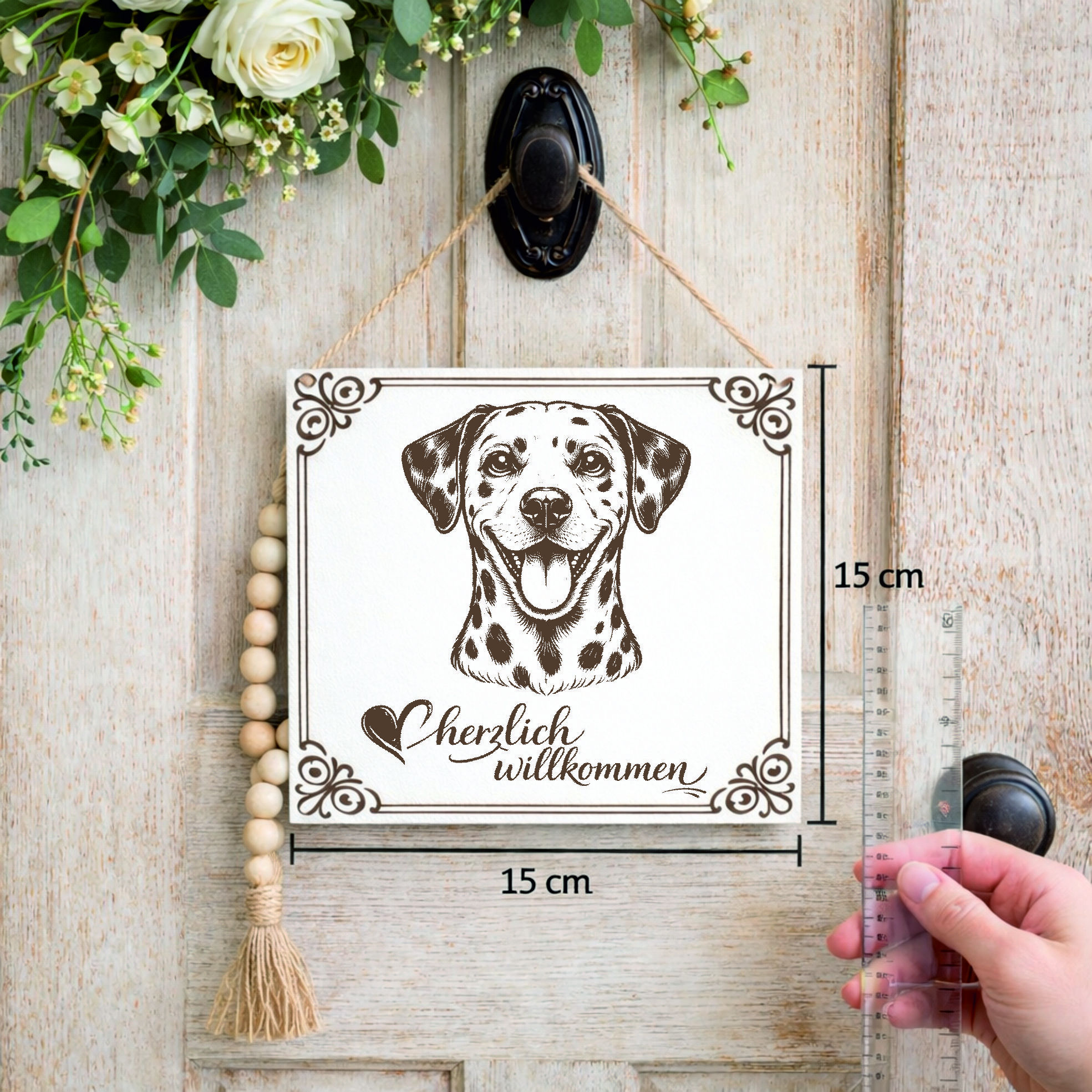Hund Willkommensschild Dalmatiner – Türschild Herzlich Willkommen – Dekoschild Haustür 15×15 cm