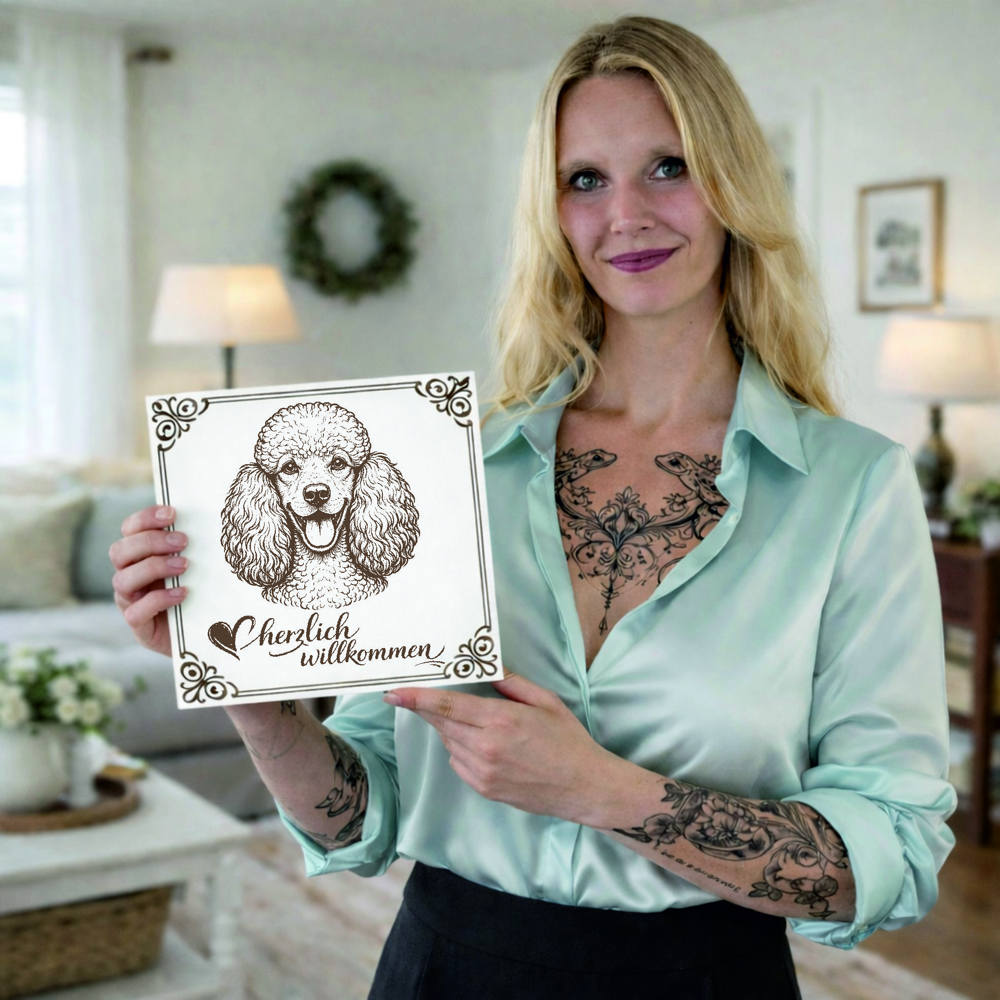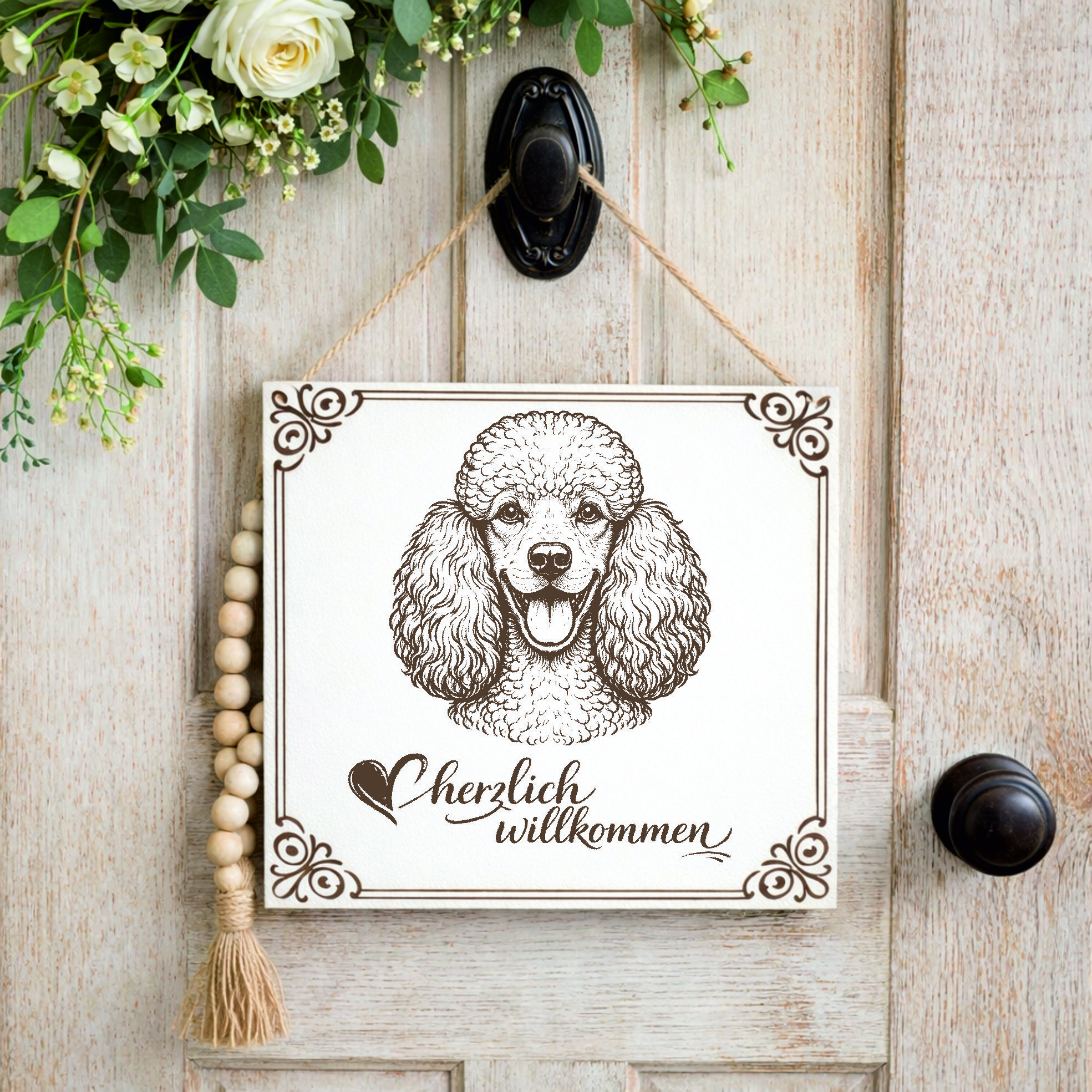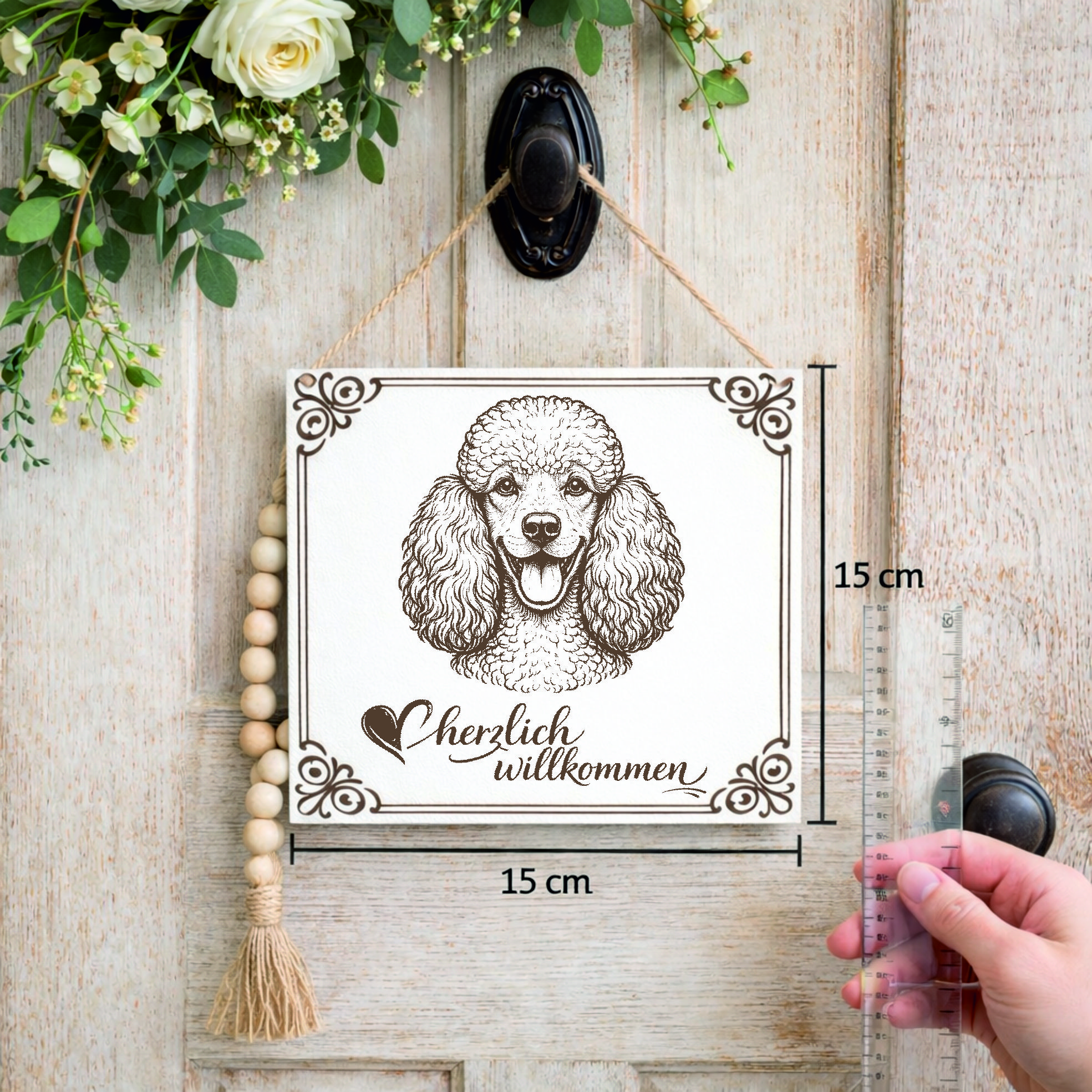 Hund Willkommensschild Pudel – Türschild Herzlich Willkommen – Dekoschild Haustür 15×15 cm