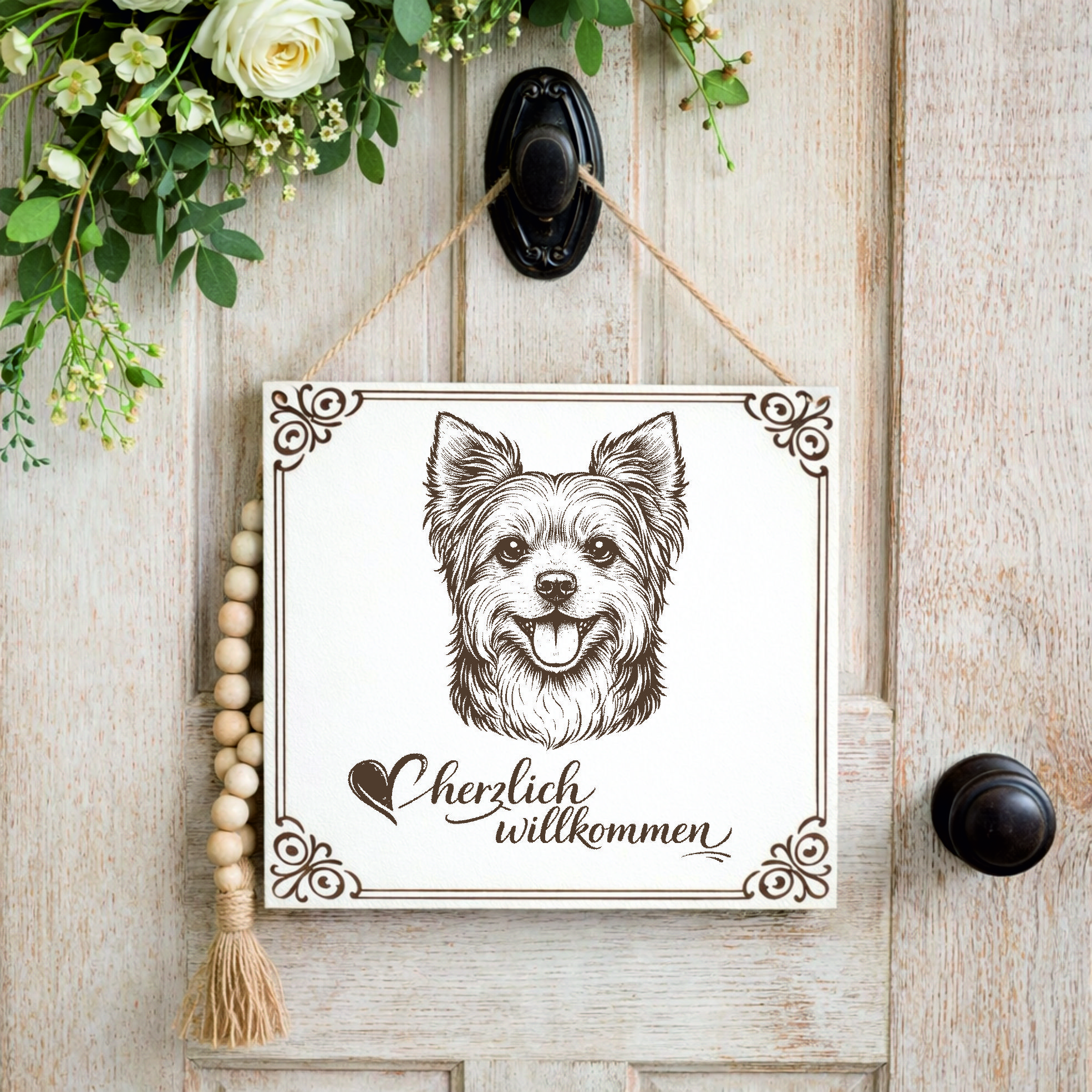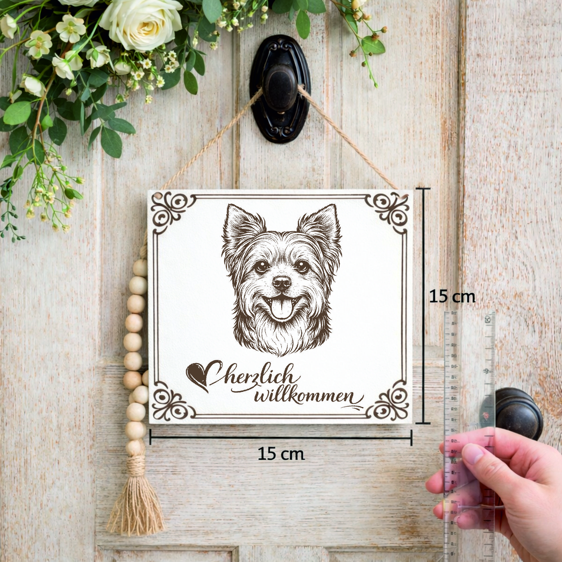 Hund Willkommensschild Yorkshire Terrier – Türschild Herzlich Willkommen – Dekoschild Haustür 15×15 cm