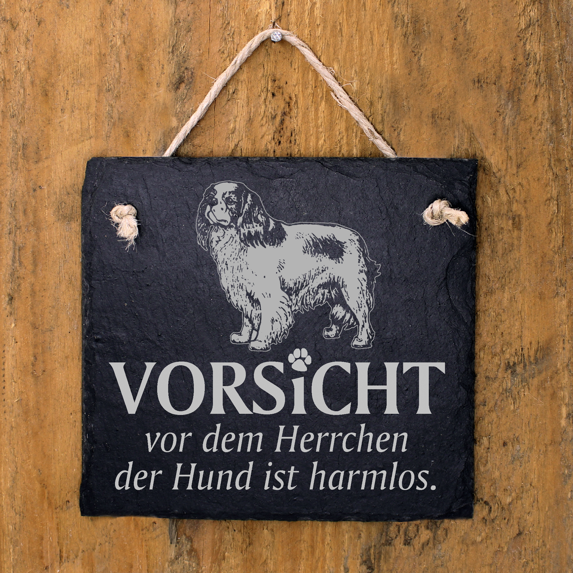 Hundeschild Cavalier King Charles Spaniel Schild aus Schiefer - Vorsicht vor dem Herrchen - 11cm x 1