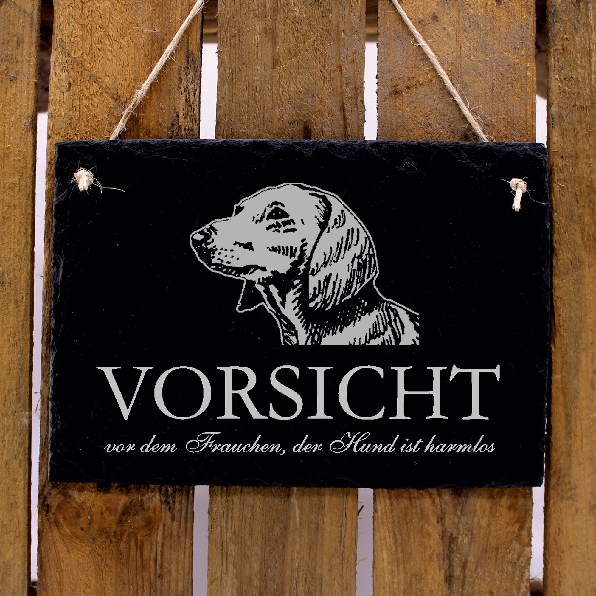 Hundeschild Dackel Dachshund Schild aus Schiefer - Vorsicht vor dem Frauchen - 22cm x 16cm