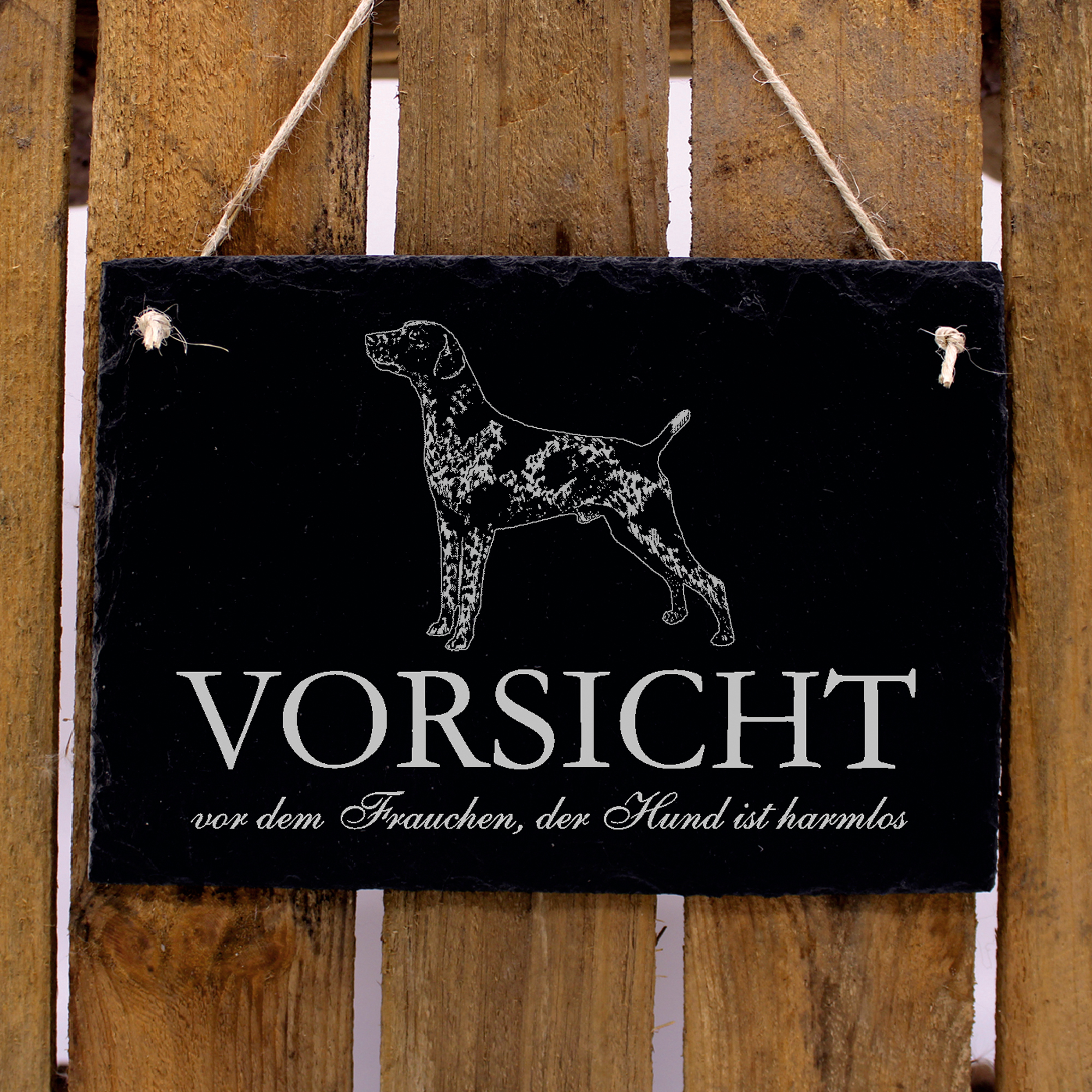 Hundeschild Deutsch Kurzhaar Schild aus Schiefer - Vorsicht vor dem Frauchen - 22cm x 16cm
