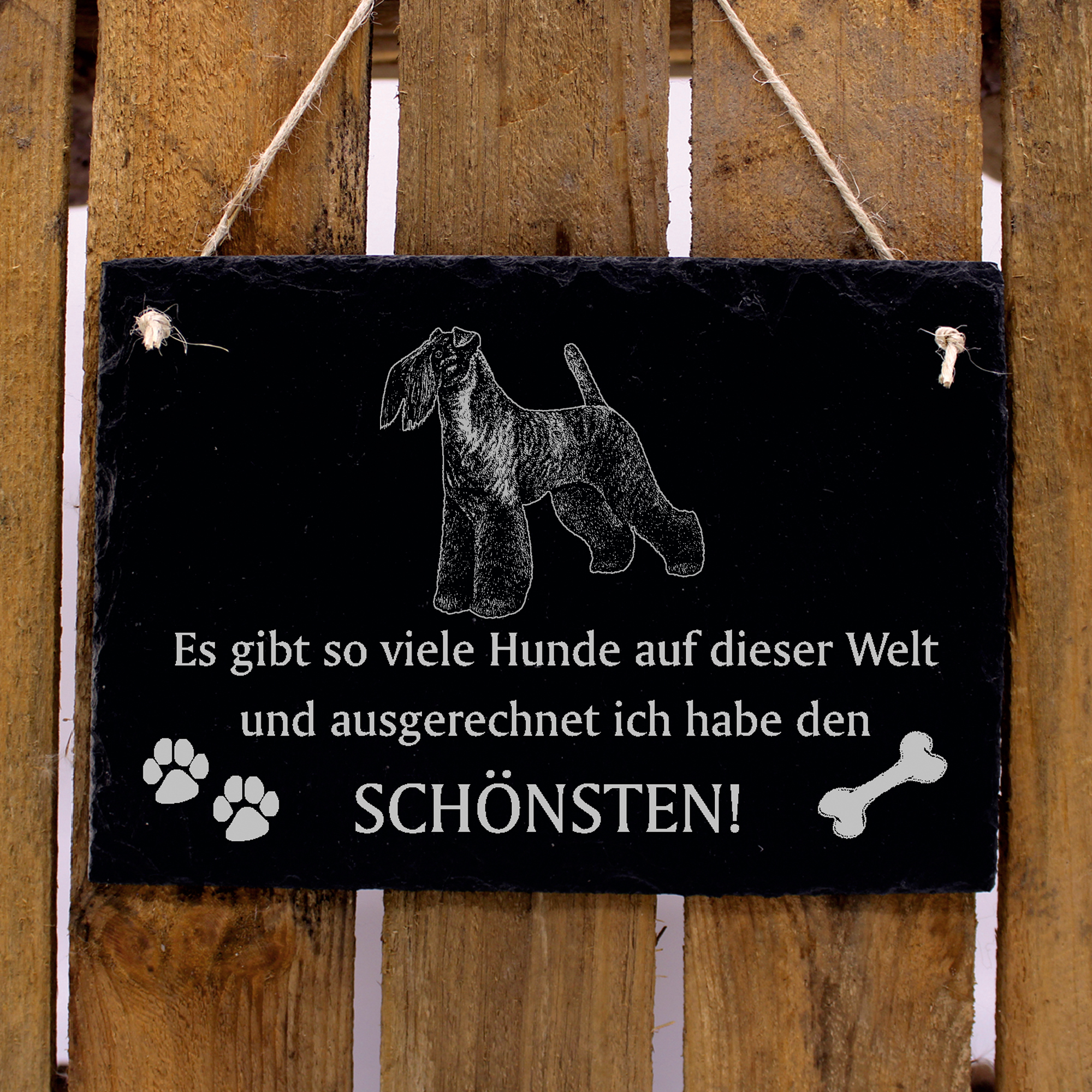 Hundeschild Kerry Blue Terrier Schild aus Schiefer - Ich habe den schönsten - 22cm x 16cm