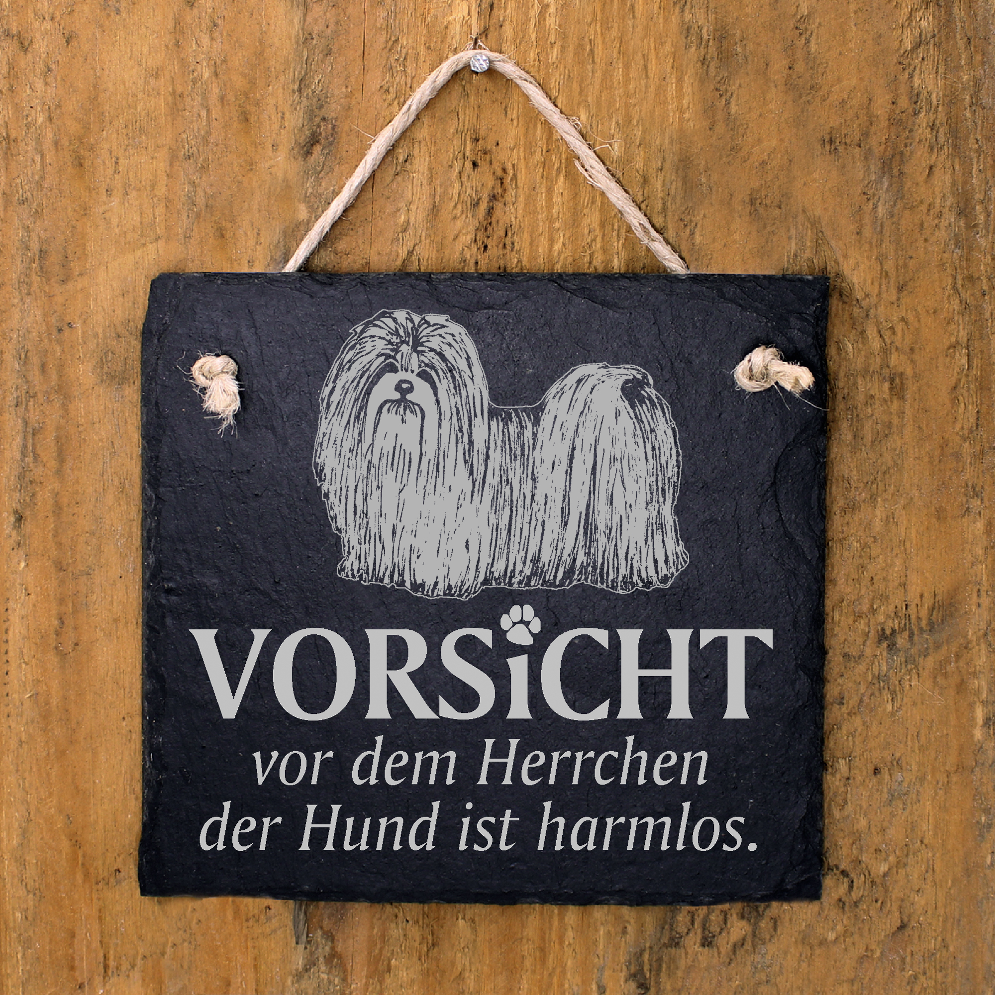 Hundeschild Lhasa Apso Schild aus Schiefer - Vorsicht vor dem Herrchen - 11cm x 11cm