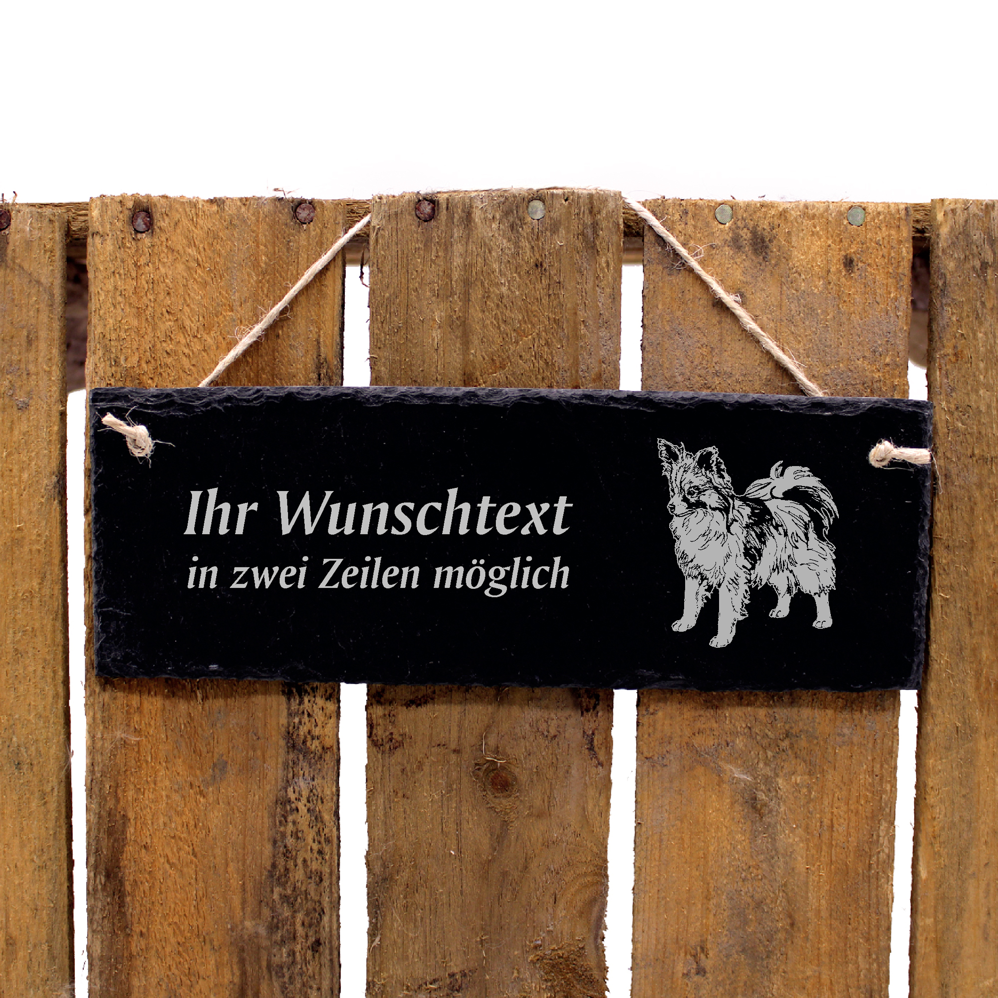 Hundeschild Papillon Türschild Schiefer - personalisiert - 22cm x 8cm