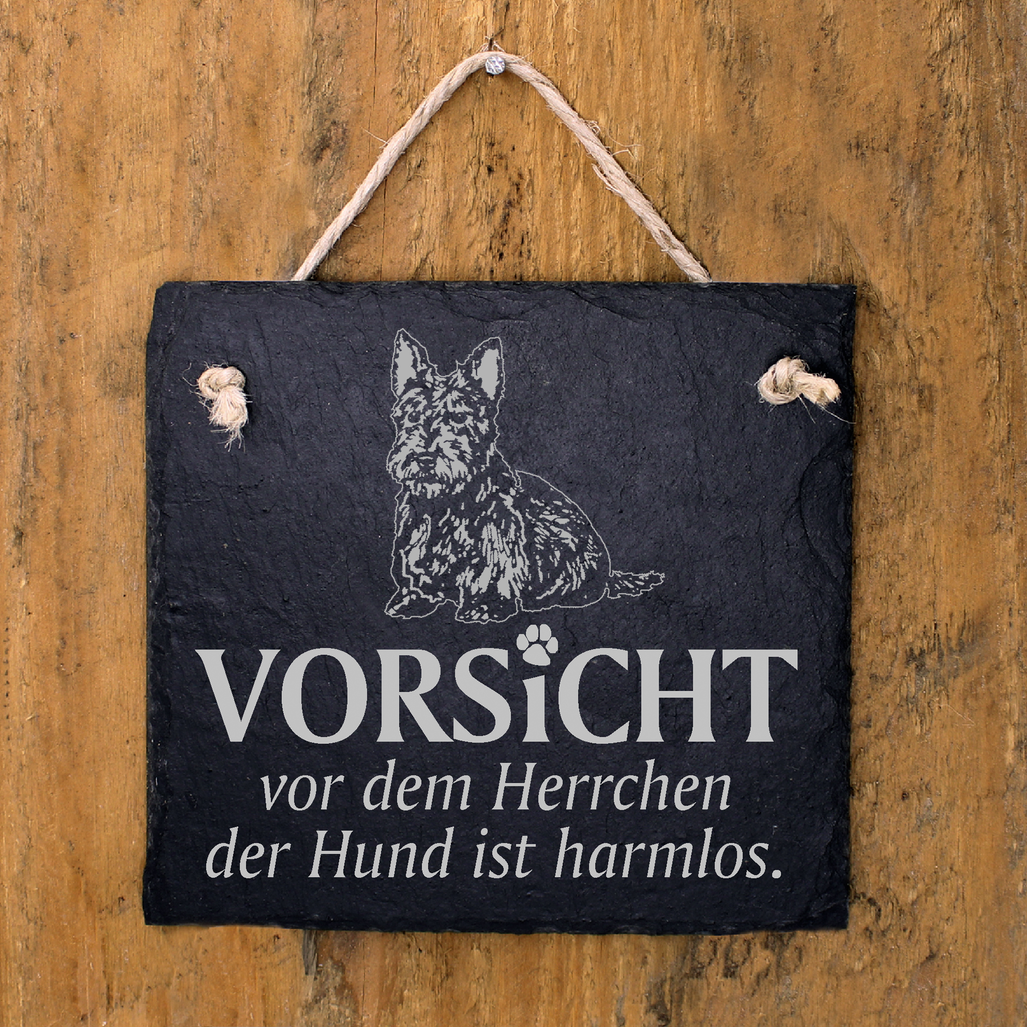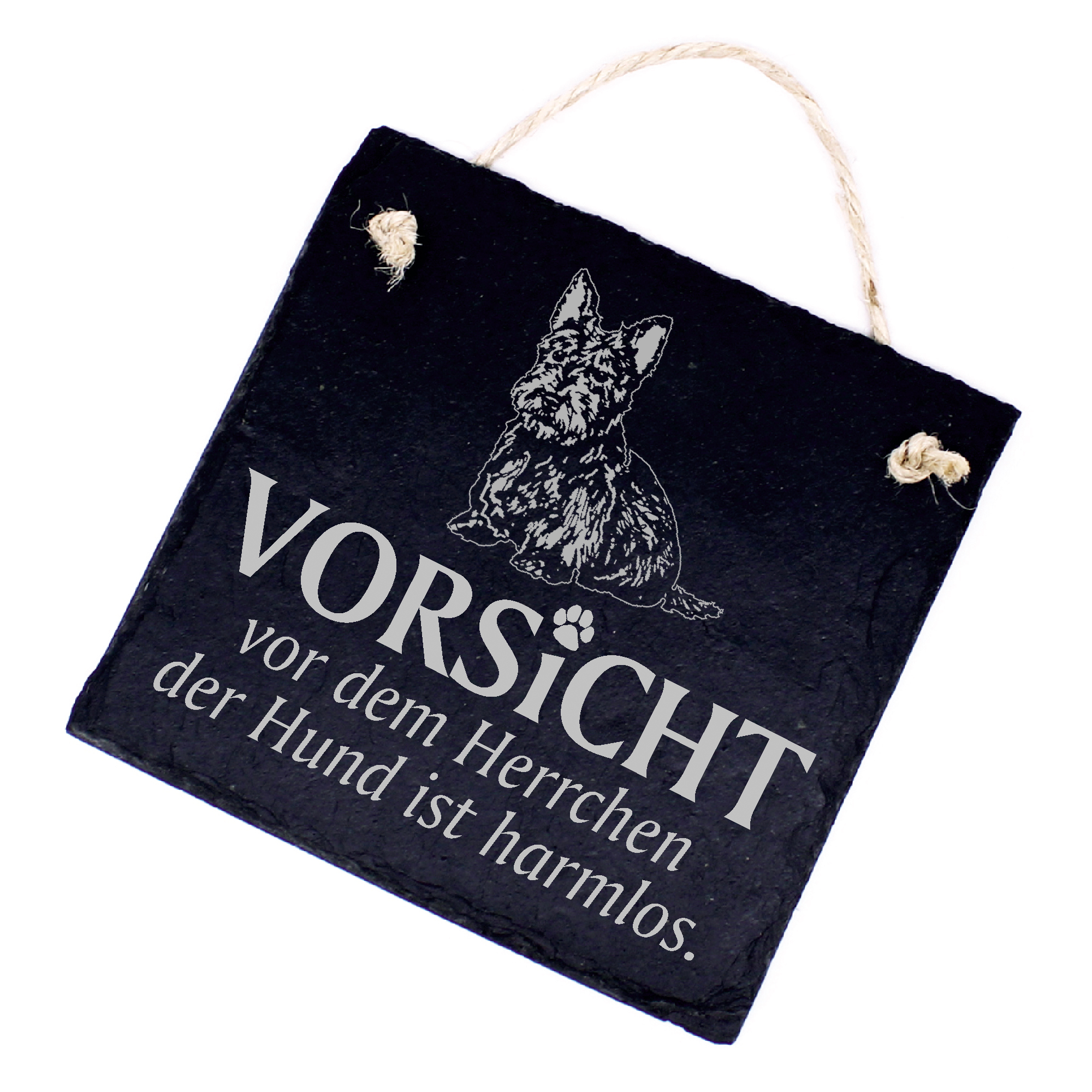 Hundeschild Scottish Terrier Schild aus Schiefer - Vorsicht vor dem Herrchen - 11cm x 11cm