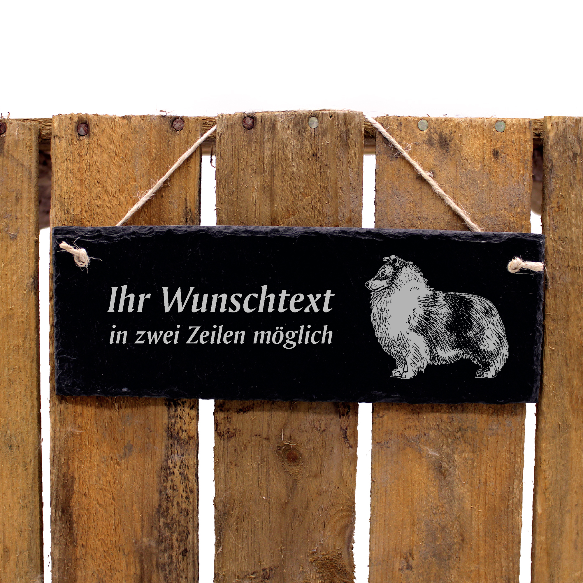 Hundeschild Shetland Sheepdog Sheltie Türschild Schiefer - personalisiert - 22cm x 8cm