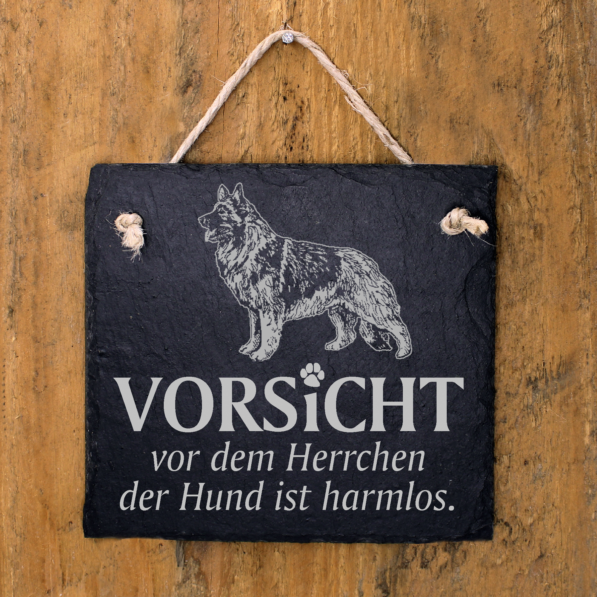 Produktinformationen "Hundeschild Shiloh Shepherd Schild aus Schiefer - Vorsicht vor dem Herrchen - 11cm x 11cm"