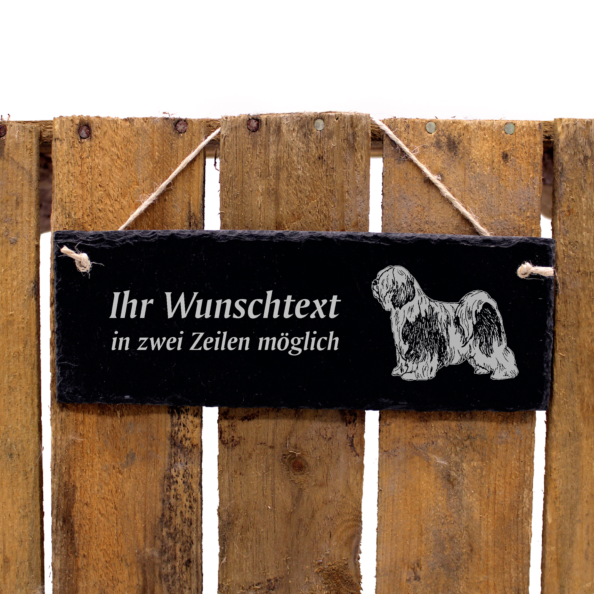 Hundeschild Tibet Terrier Türschild Schiefer - personalisiert - 22cm x 8cm