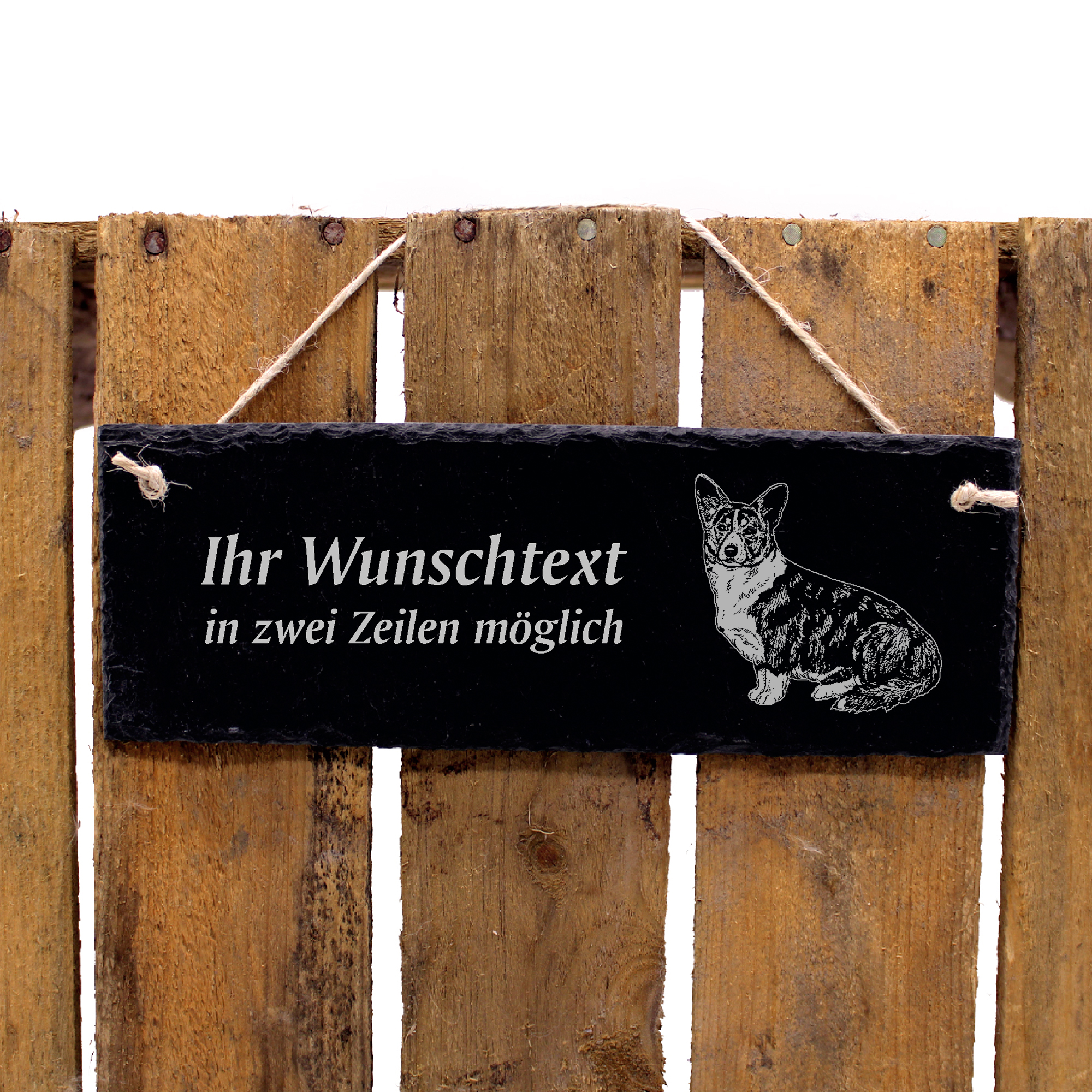 Hundeschild Welsh Corgi Cardigan Türschild Schiefer - personalisiert - 22cm x 8cm