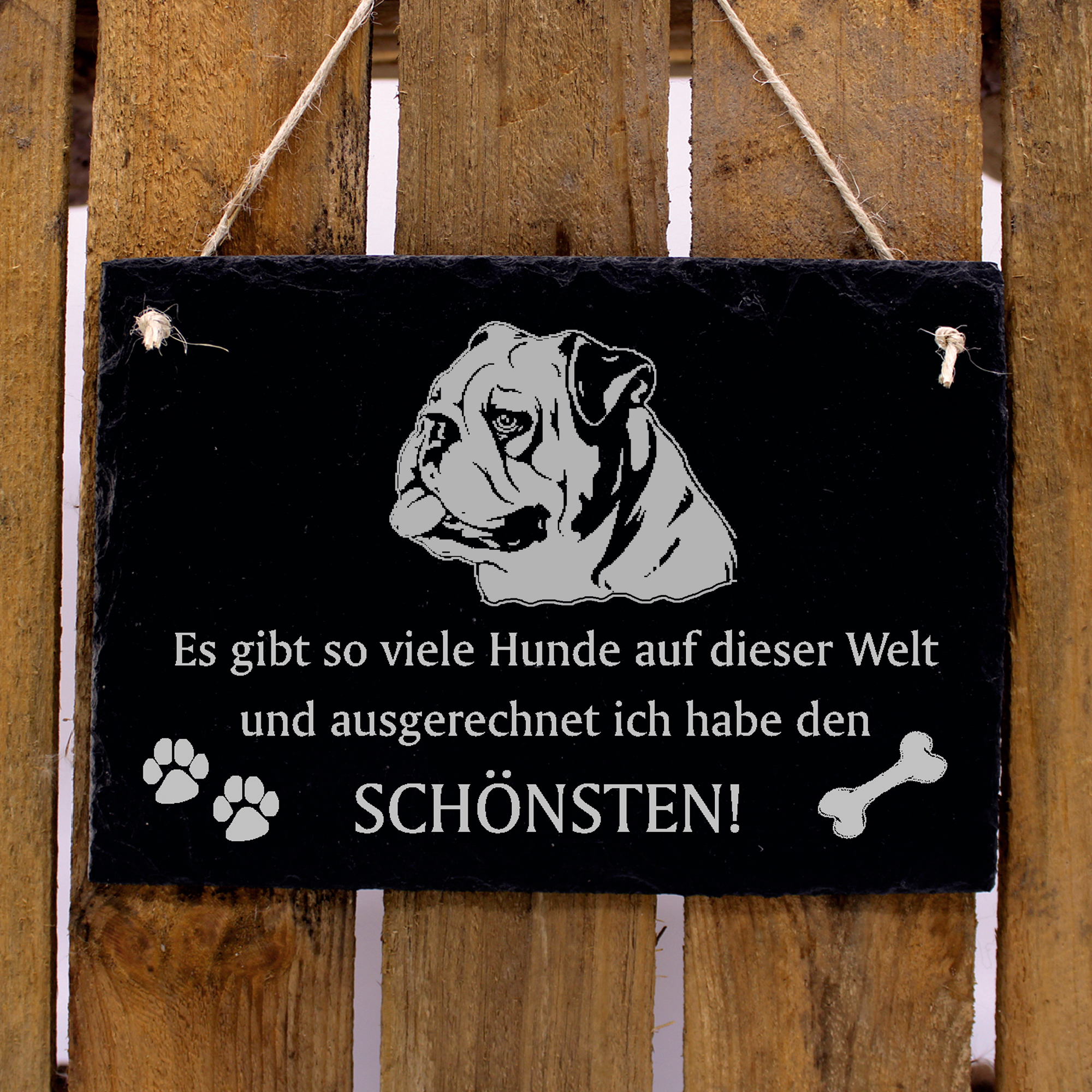 Hundeschild englische Bulldogge Schild aus Schiefer - Ich habe den schönsten - 22cm x 16cm