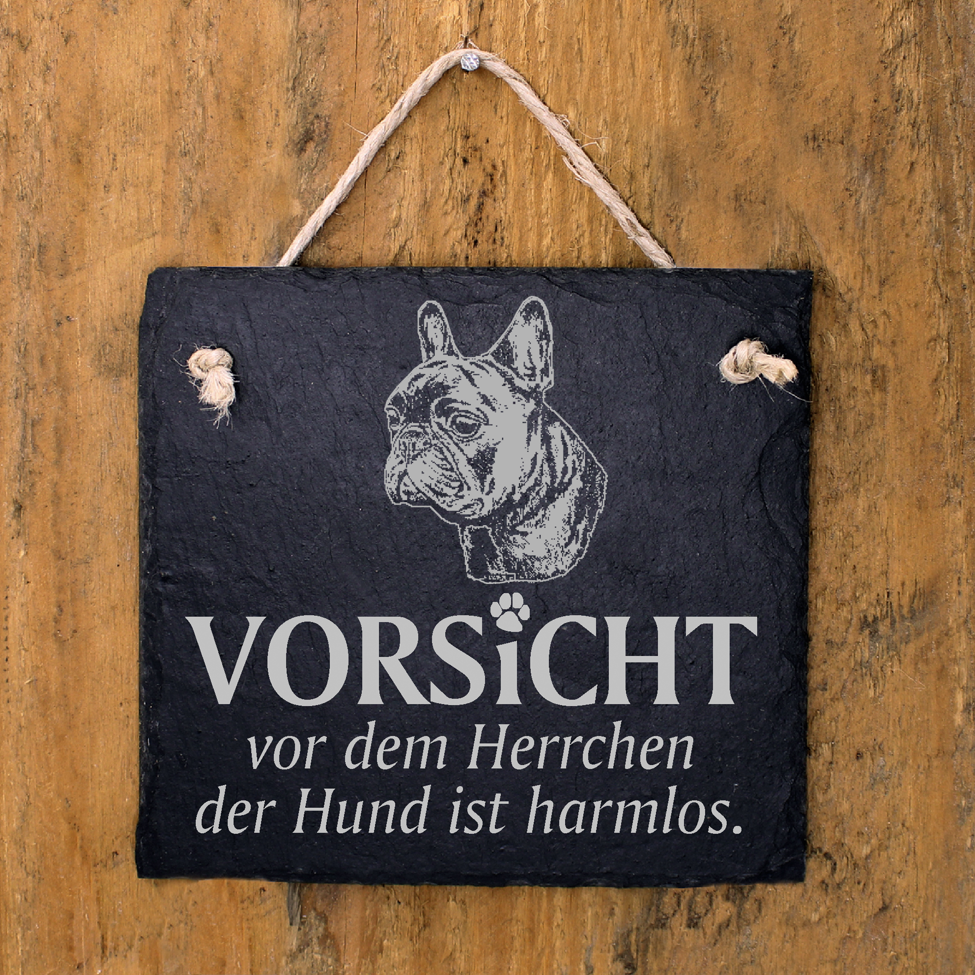 Hundeschild französiche Bulldogge Schild aus Schiefer - Vorsicht vor dem Herrchen - 11cm x 11cm