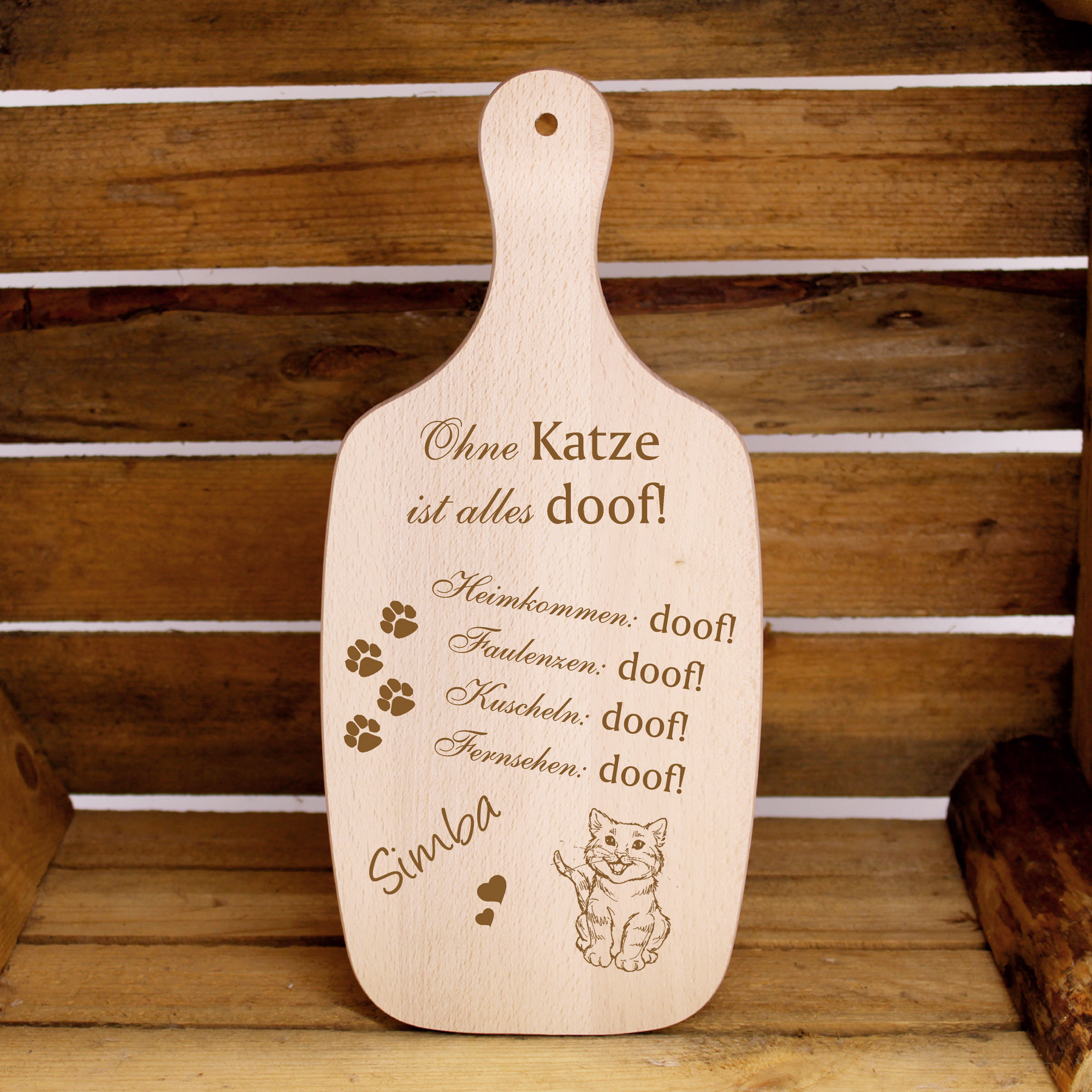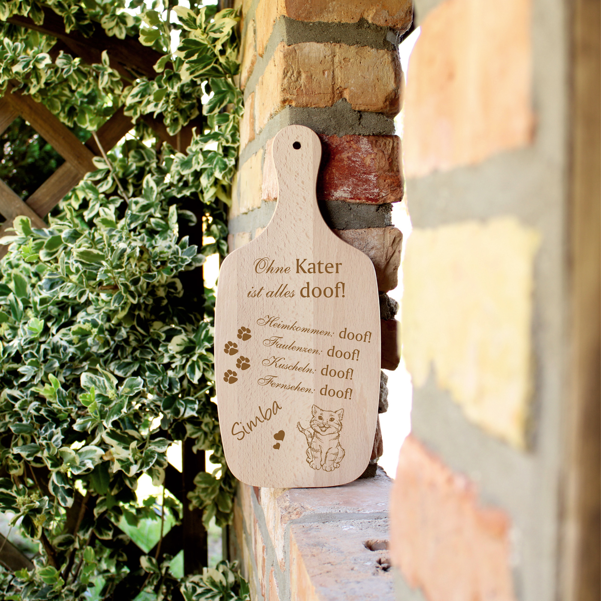 Bringen Sie Freude und Humor in Ihr Zuhause mit unserem personalisierten Holzschild mit lustigem Katzenspruch! Dieses charmante Dekoelement ist perfekt für alle Katzenliebhaber und wird garantiert zum Blickfänger in Ihrer Wohnung.