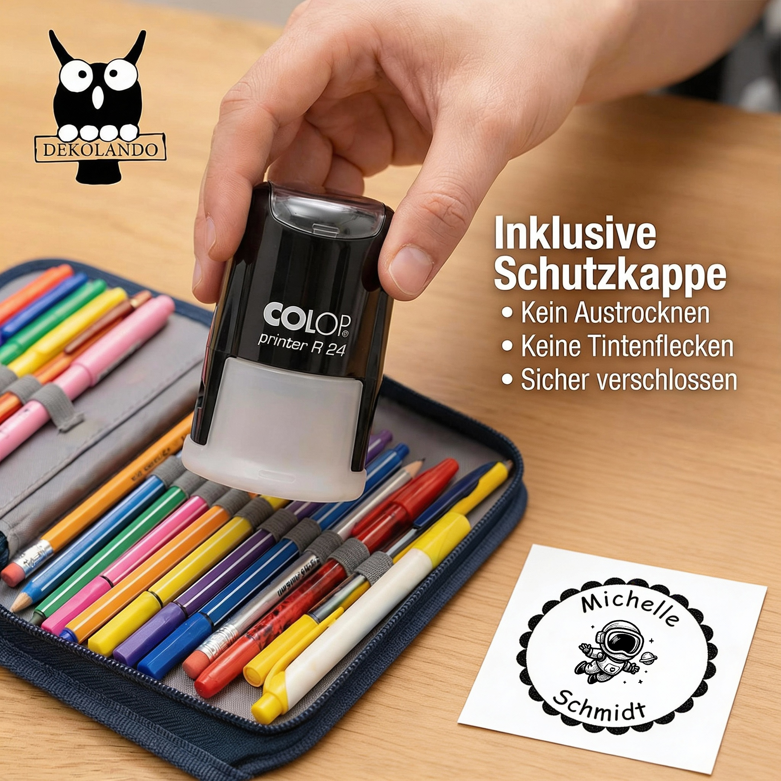 Kinder Namensstempel Astronaut personalisiert – 24mm – Namensstempel für Schule & Grundschule – Geschenk Schulanfang Einschulung