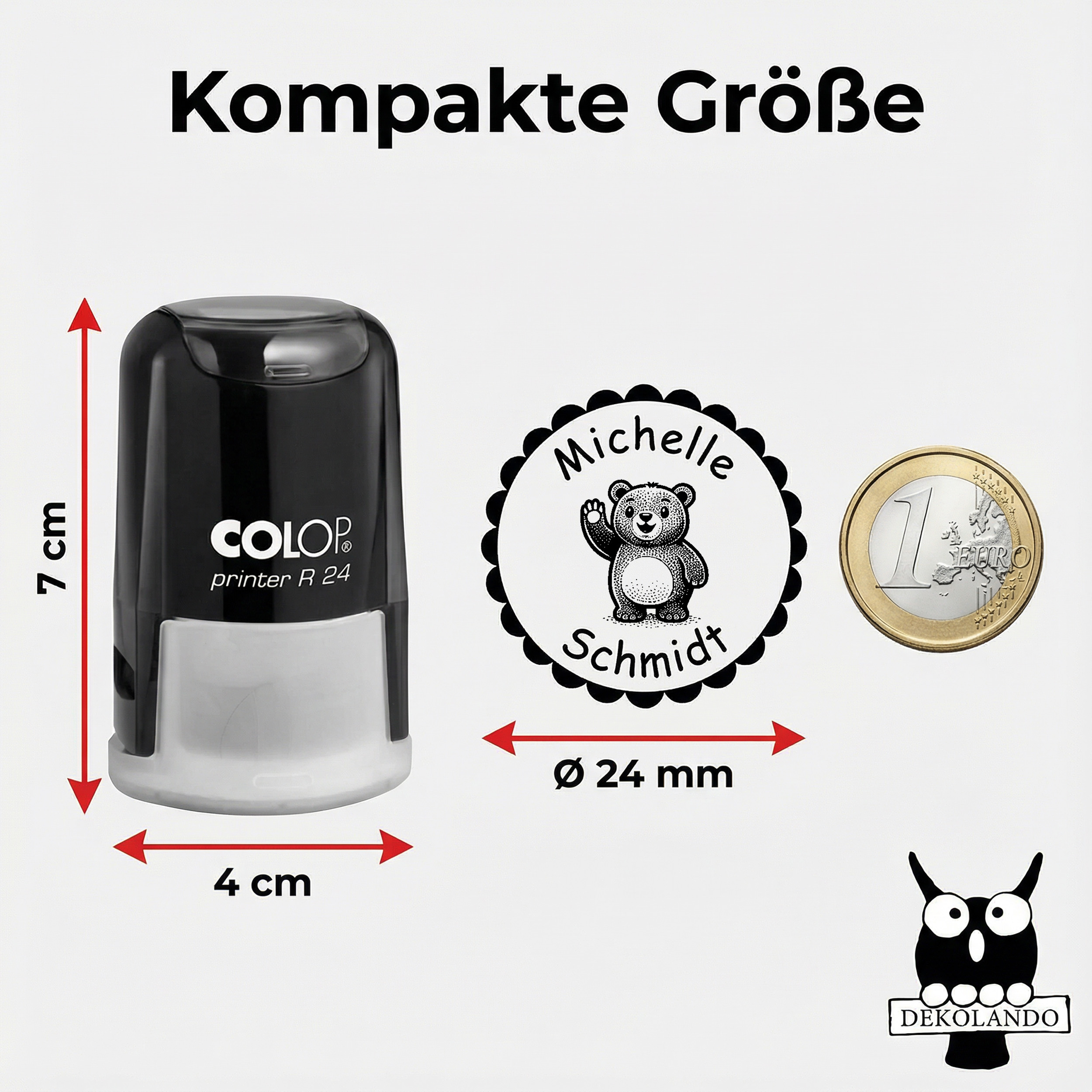 Kinder Namensstempel Bär personalisiert – 24mm – Namensstempel für Schule & Grundschule – Geschenk Schulanfang Einschulung