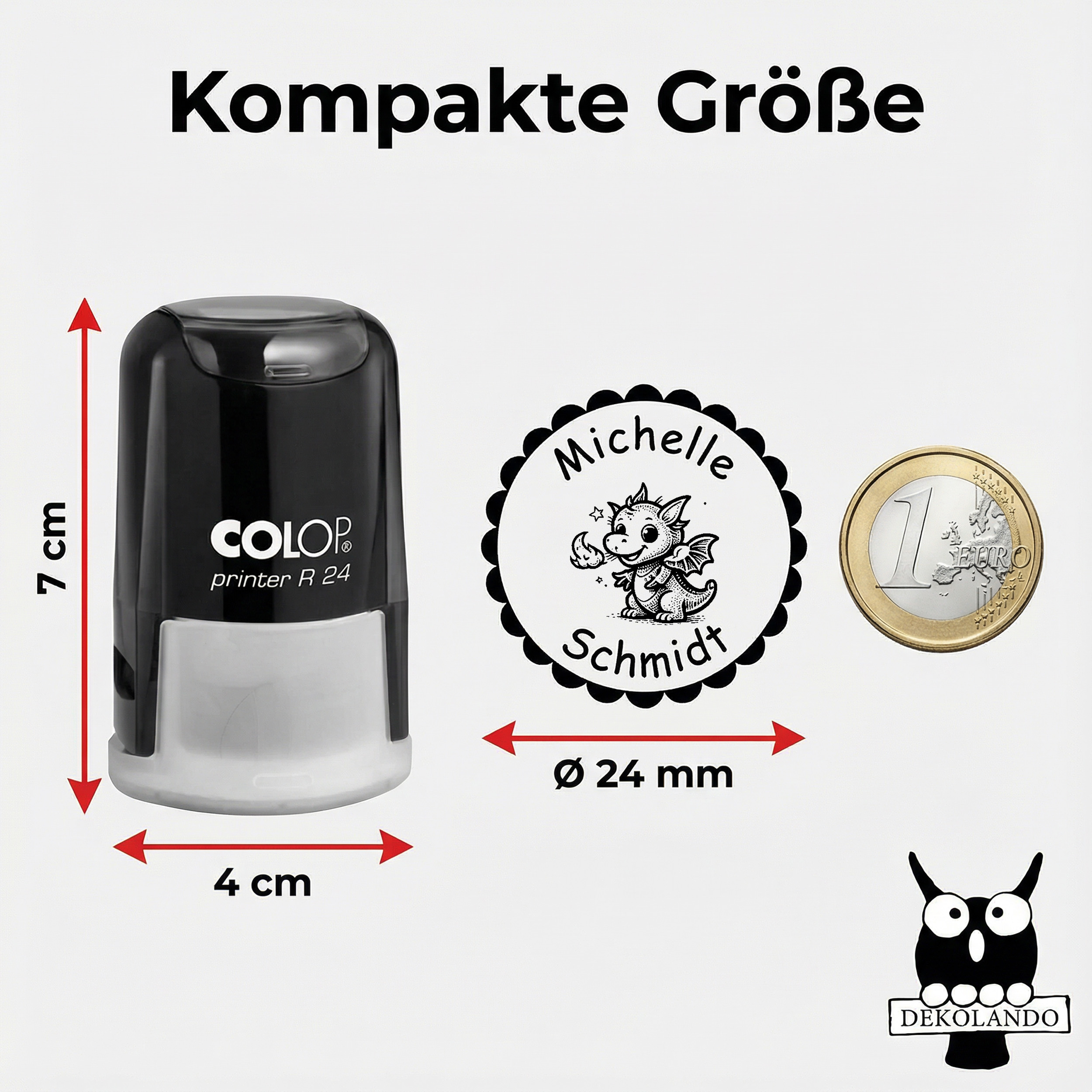 Kinder Namensstempel Drache personalisiert – 24mm – Namensstempel für Schule & Grundschule – Geschenk Schulanfang Einschulung