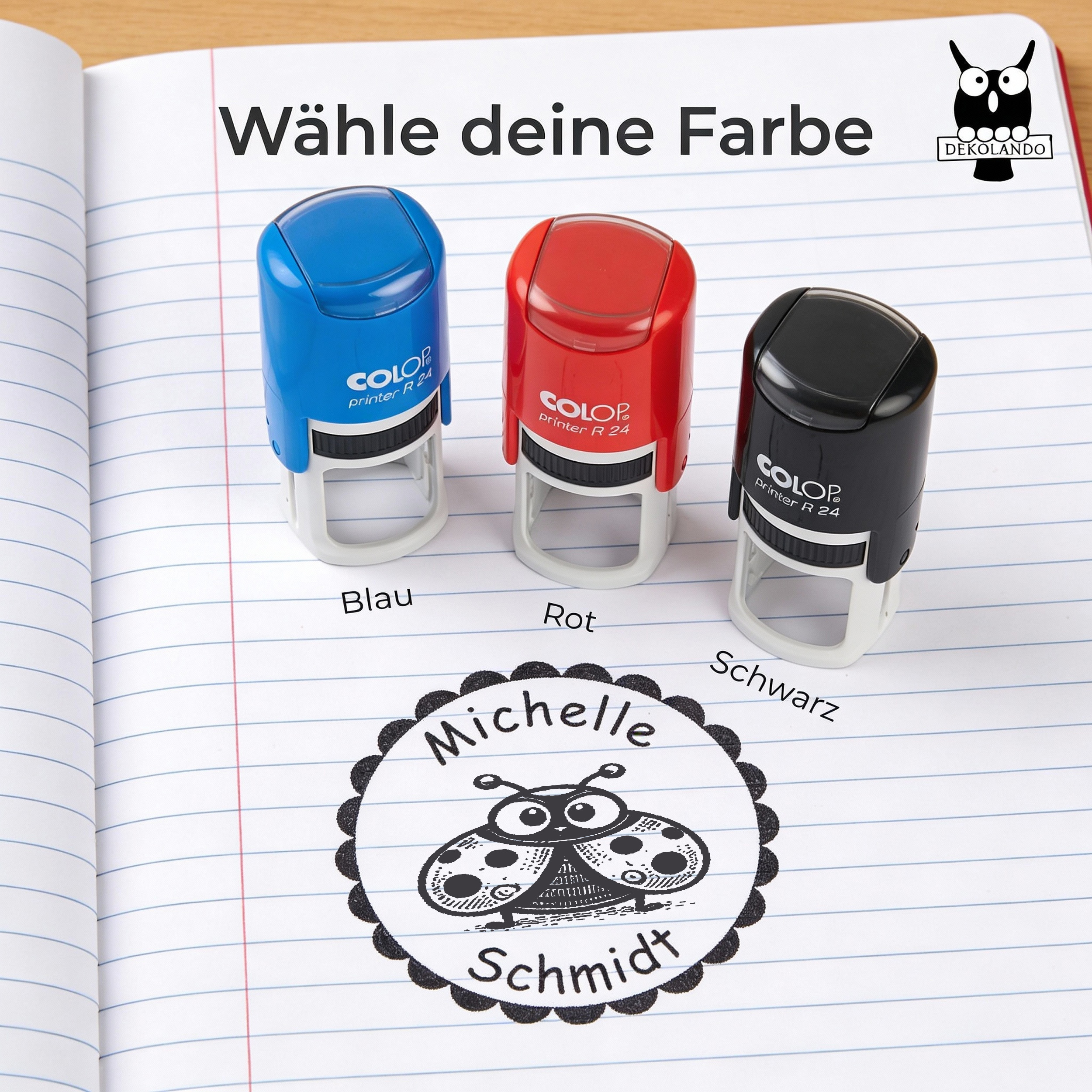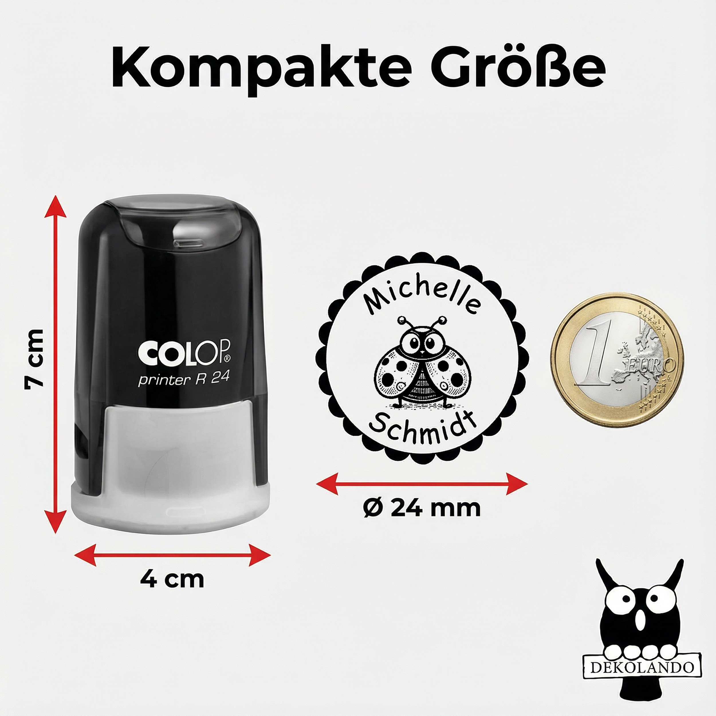 Kinder Namensstempel Marienkäfer personalisiert – 24mm – Namensstempel für Schule & Grundschule – Geschenk Schulanfang Einschulung